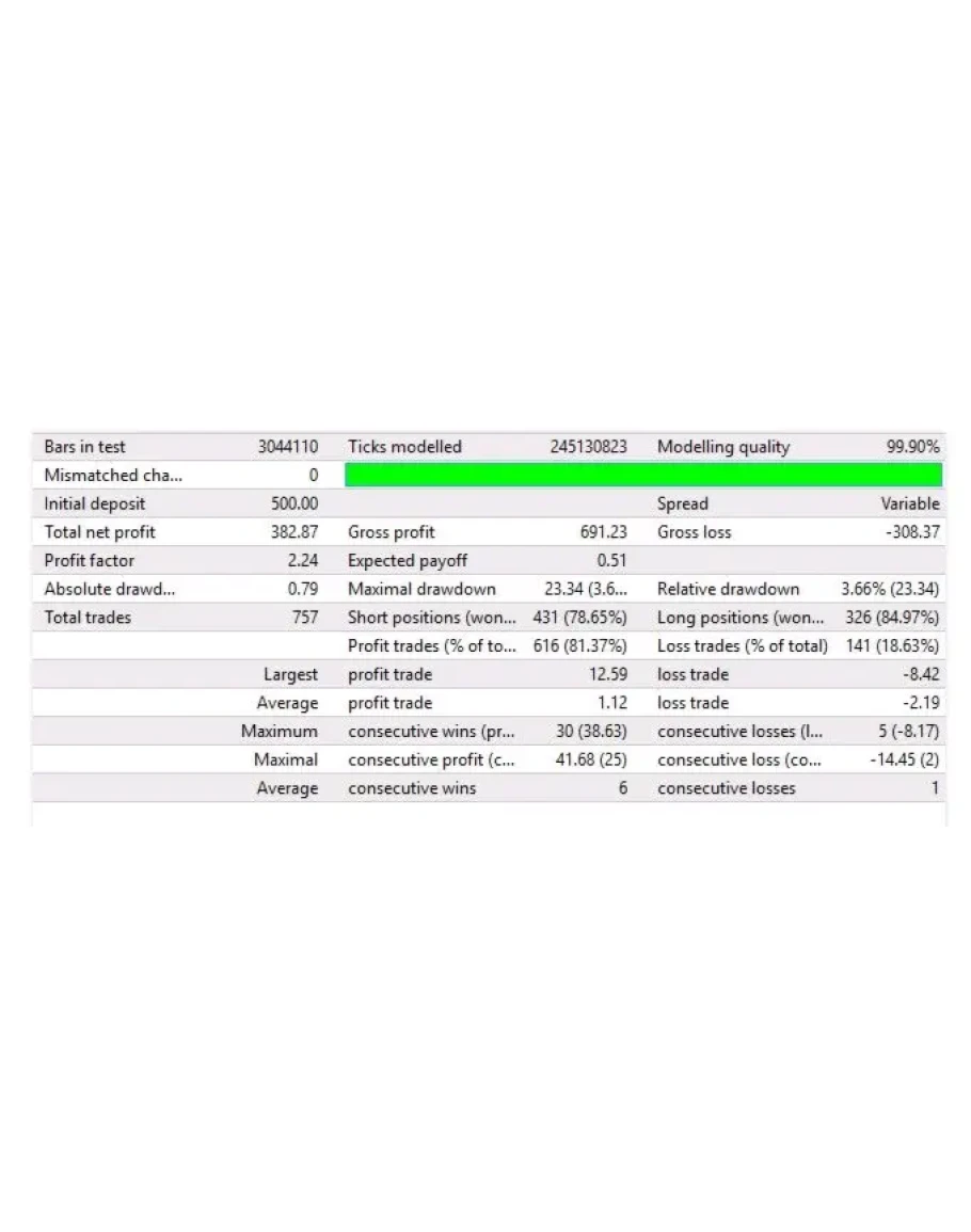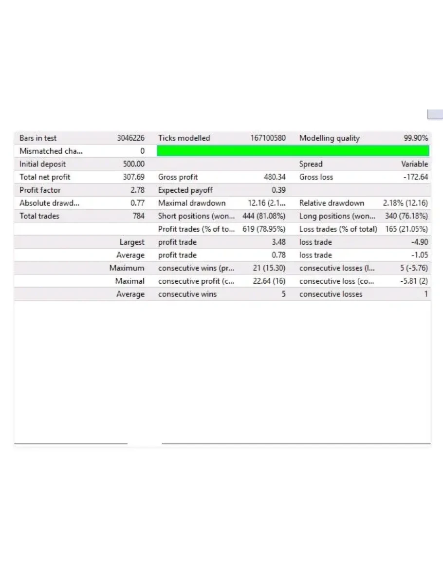 Он не использует мартингейл или сетку и использует фиксированные стоп-лосс для каждой позиции.