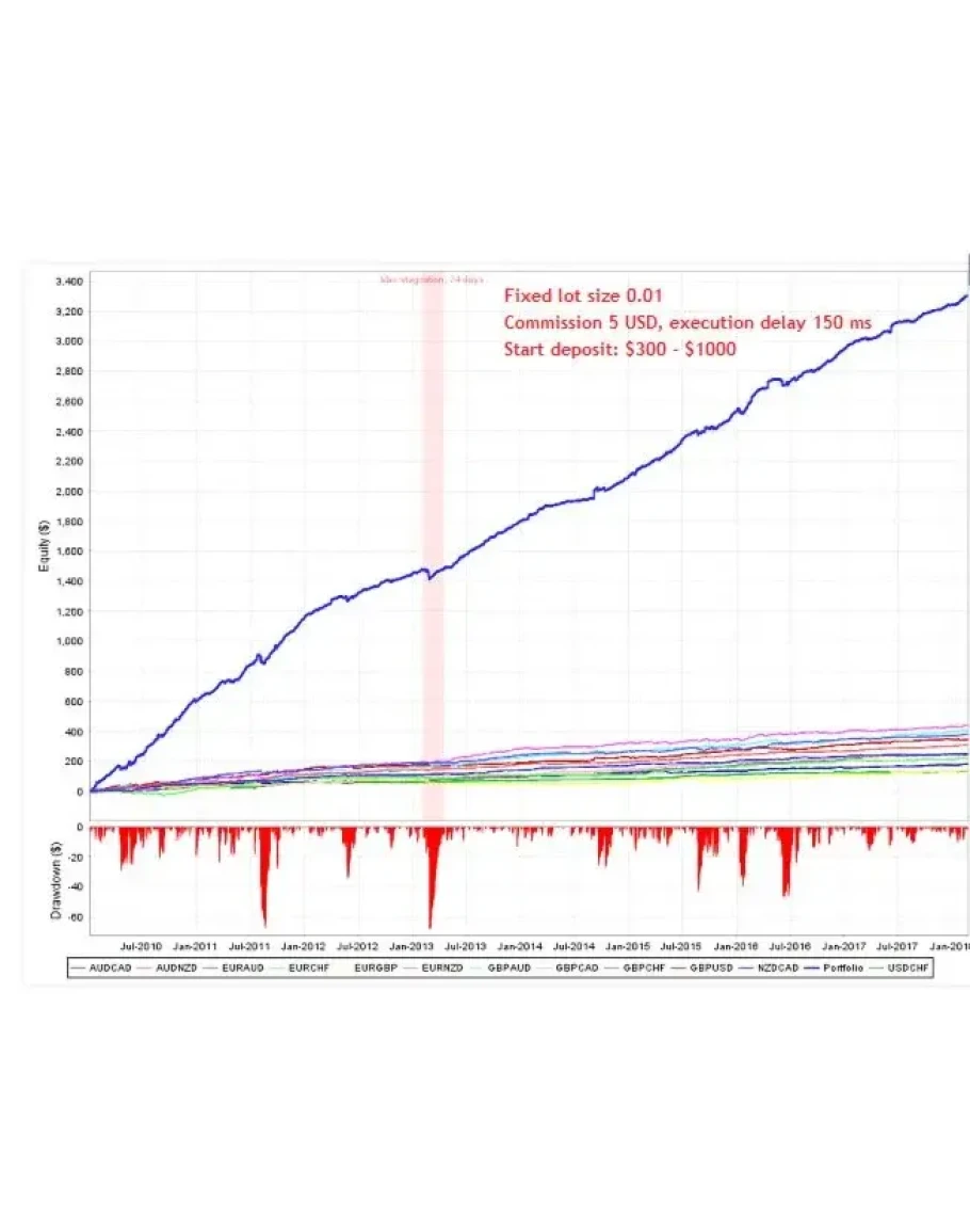 Это мультивалютная система возврата к среднему, которая торгуется в конце сессии в Нью-Йорке и в начале азиатской сессии. Вам нужен только один открытый график для торговли со всеми символами.