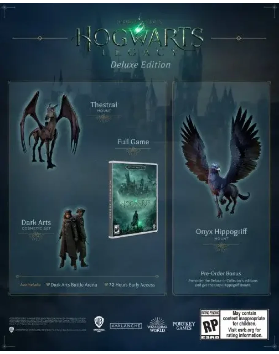 🔥 Издание Deluxe: В цифровое Deluxe-издание игры «Хогвартс. Наследие» входит: Верховое животное фестрал Боевая арена Тёмных искусств Набор с внешним видом Тёмных искусств Гарнизонная шляпа Тёмных искусств 72 часа раннего доступа