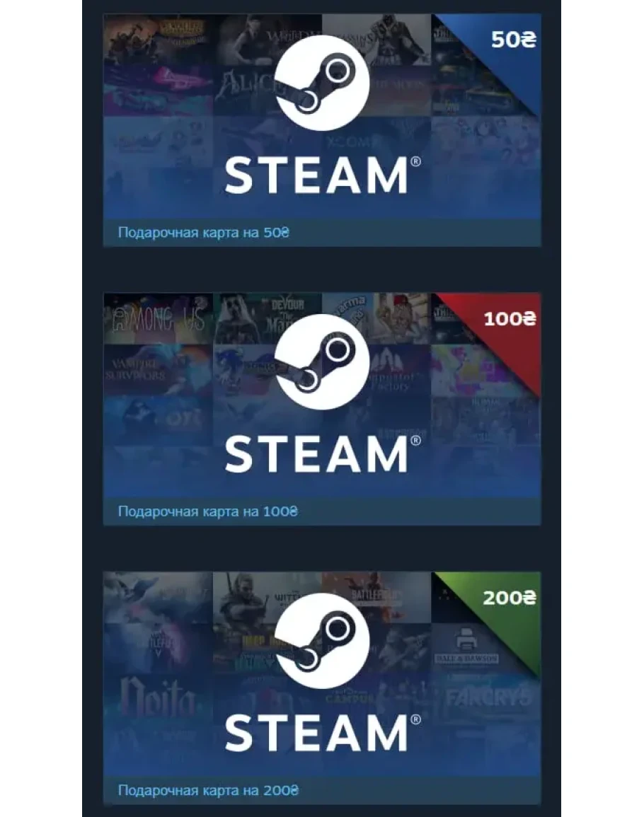 STEAM УКРАИНА КАРТЫ ПОПОЛНЕНИЯ 50 - 5000 UAH