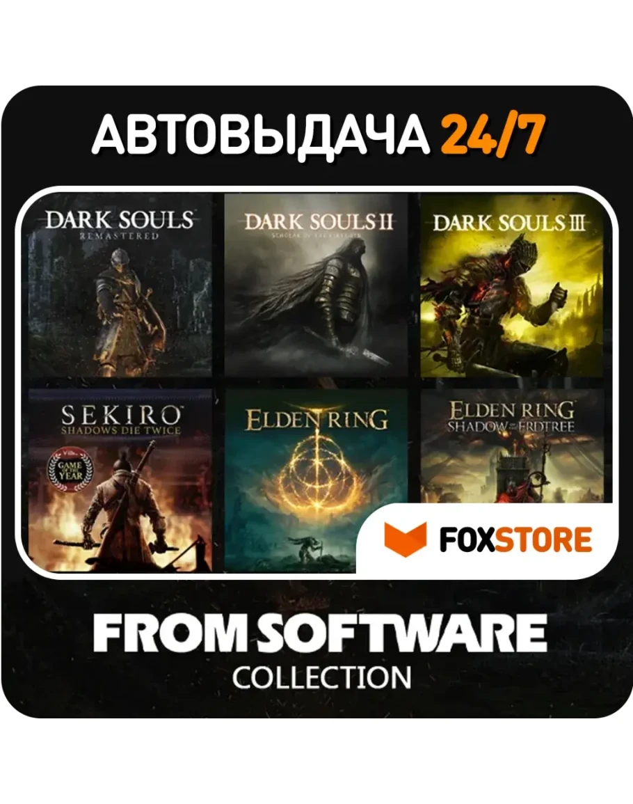 🔥 Вы получаете комплект из 5 игр: Elden Ring, Dark Souls Remastered, Dark Souls II: Bundle, Dark Souls III: Deluxe Edition, а также Sekiro: Shadows Die Twice GOTY Edition.