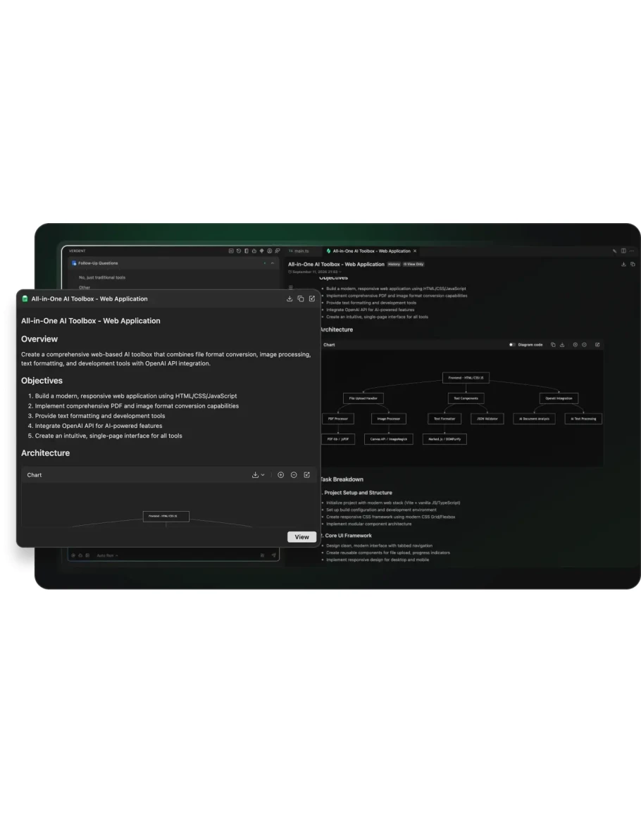 Verdent AI — платформа для разработки программного обеспечения, использующая агентный искусственный интеллект. Она позволяет нескольким AI-агентам работать одновременно, что значительно ускоряет процесс разработки сложного программного обеспечения.