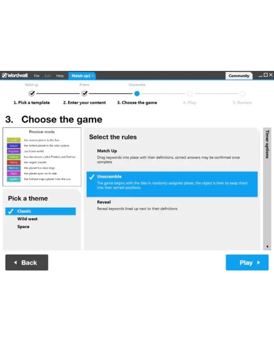 Wordwall — это онлайн-платформа для создания интерактивных заданий и игр для обучения. Она подходит для учителей, студентов и всех, кто хочет сделать процесс обучения более увлекательным. Wordwall предлагает коллекцию разнообразных шаблонов для интерактивных упражнений — от кроссвордов и викторин до флеш-карточек, заполнения пробелов и заданий типа «Найди пару».