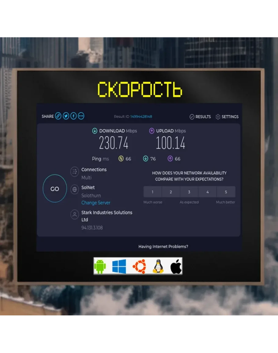 ⚡ Скорость от 100 мбит/сек до 1000 мбит/сек
