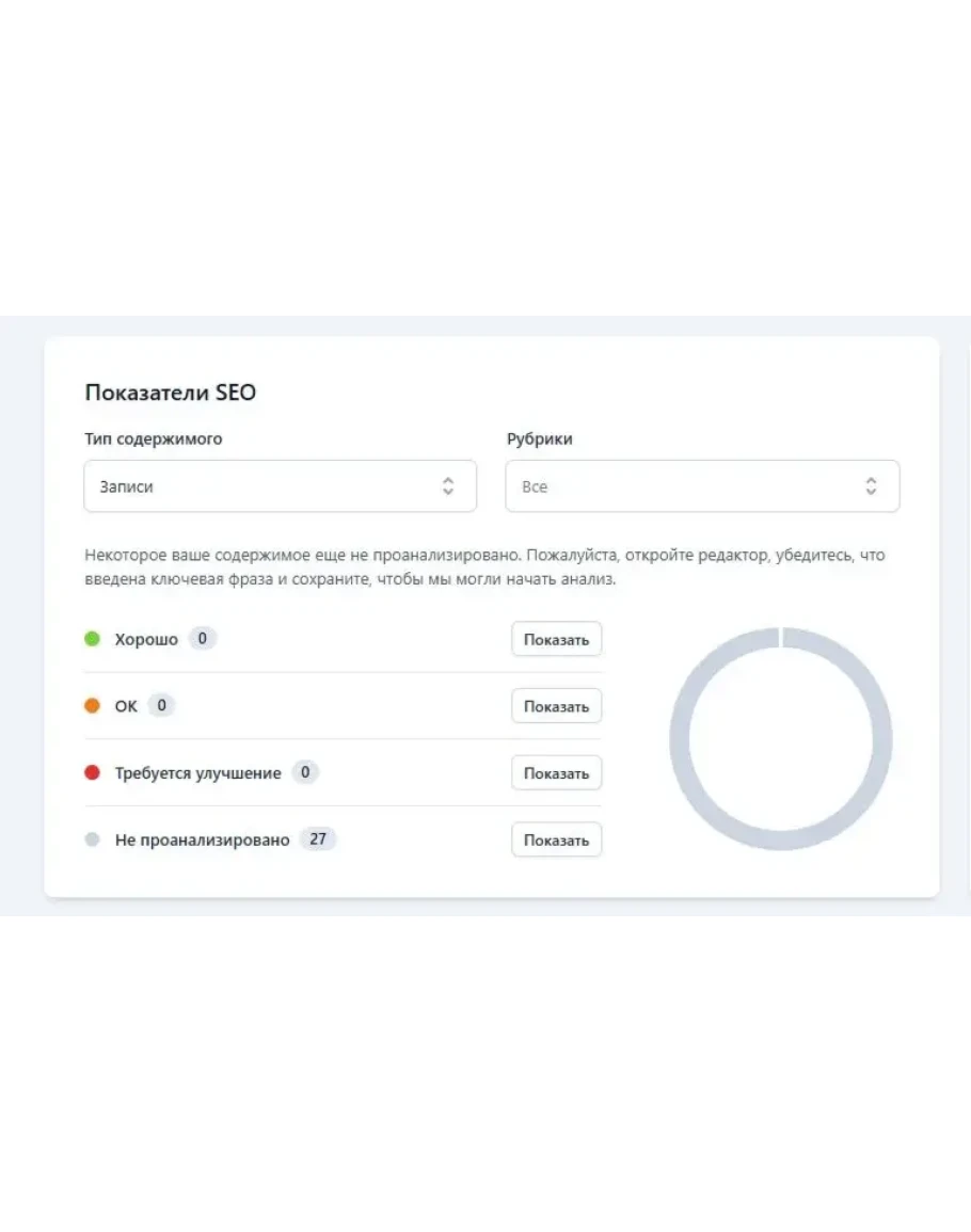 Анализ контента — Плагин анализирует ваш текст на SEO-параметры, подсказывая, как улучшить читаемость и SEO-оптимизацию.
