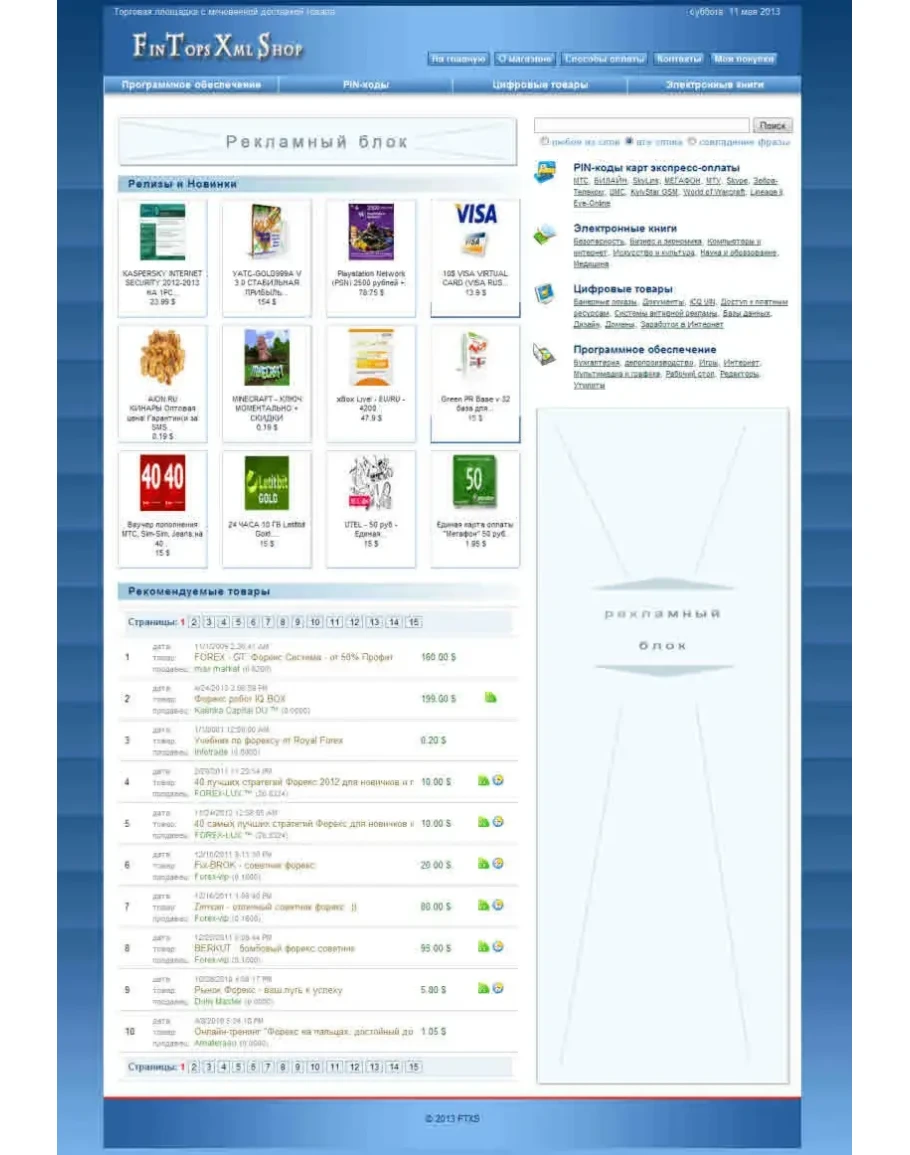 8.Аналогов в интернете нет, это не зеркало площадки плати.ру, а полноценная торговая площадка. С полностью настраиваемым дизайном, структурой вывода товаров и прочими отличиями от стандартных скриптов продающихся за копейки.