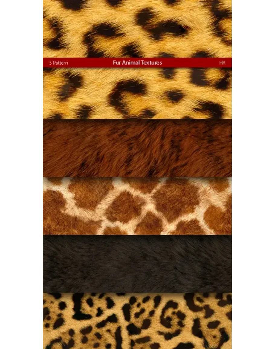 5 seampless pattern texture Fur Animal. Fur Animal styles: Black Bear, Brown Beer, Cheetah, Girafe, Leopard. Great for your creativity, for website, 3D programs, banners, billboards, presentations, business cards, postcards, leaflets, flyers, flash and web backgrounds, desktop backgrounds and more.