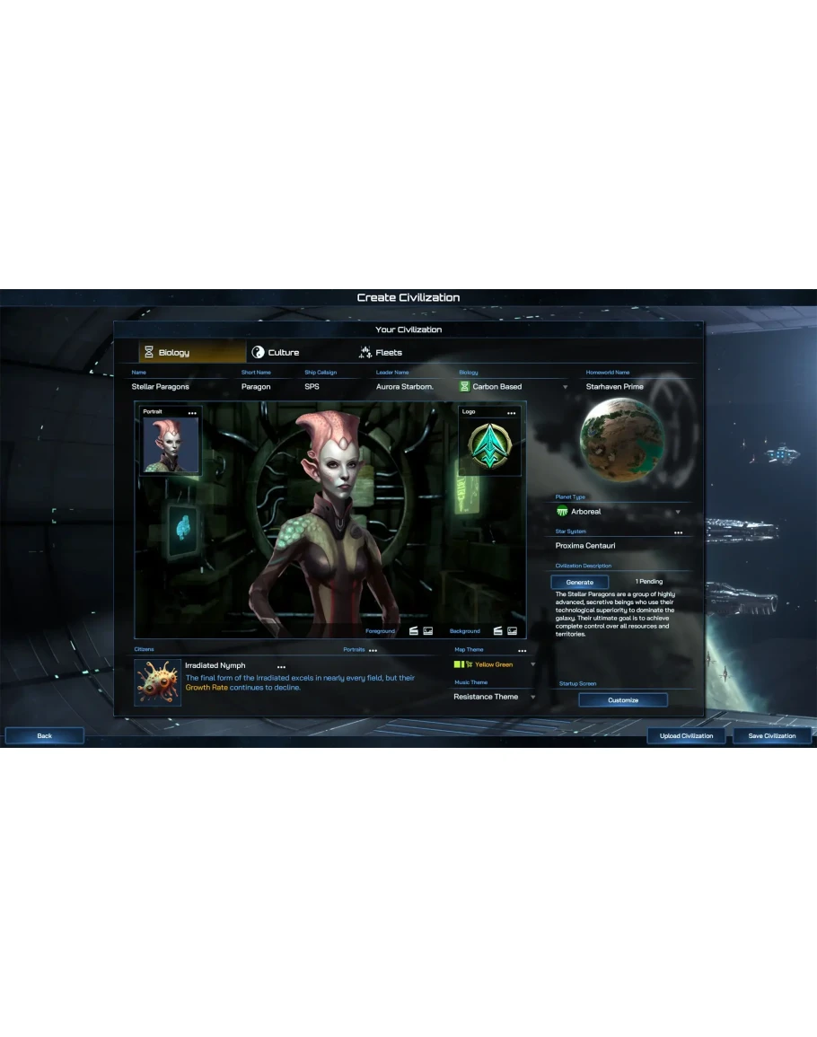 Будучи лидером молодого межзвездного вида, тебе предстоит направлять свой народ на развитие новых миров, строительство новых типов звездолетов и ведение войн, чтобы гарантировать выживание твоей цивилизации в часто враждебной вселенной.