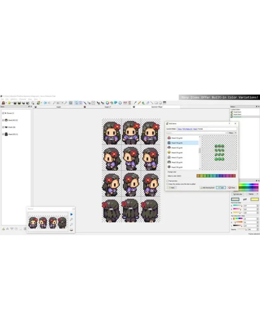 Создавая атмосферу ролевых игр эпохи SNES, RPG Maker DS имела большой успех в Японии. К сожалению, он не добрался до Северной Америки (пока). Однако что было изменено, так это множество ресурсов для использования в Game Character Hub. Мы взяли исходные ресурсы и модифицировали их (при необходимости), чтобы они идеально работали с Game Character Hub.
