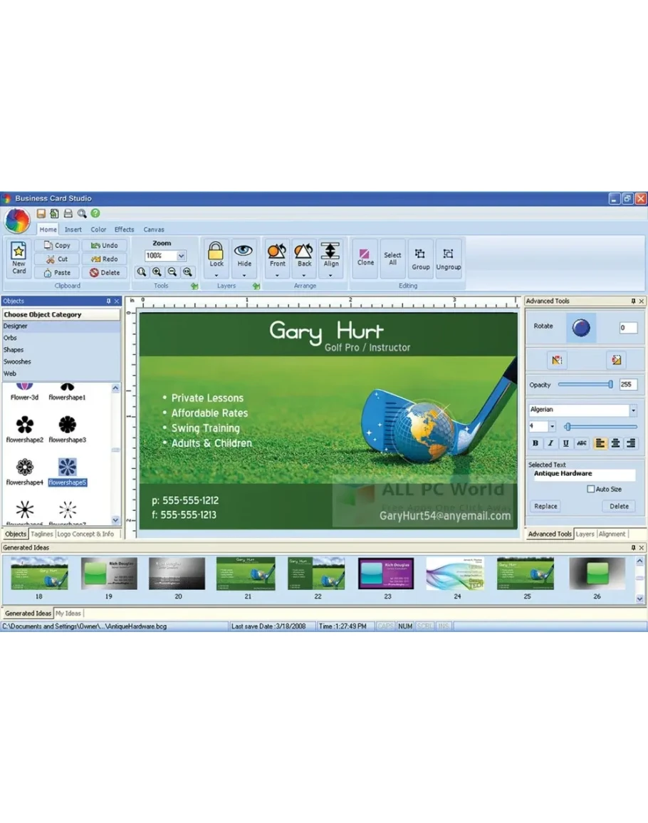 Создайте свою уникальную визитку с помощью Summitsoft Business Card Studio Pro . Выберите шаблон или создайте свой собственный дизайн для вашей визитки. Вы можете использовать пошаговый мастер, чтобы легко создать свою визитную карточку или получить полный контроль над слоями, чтобы выбрать шрифт, добавить графику, импортировать фоновые изображения и поддерживать точное выравнивание. Вы также можете применять специальные эффекты, такие как тени, размытие, кадрирование и тиснение. Экспортируйте дизайн своей визитной карточки в популярные форматы файлов, такие как JPEG, BMP, PNG, EMF, WMF, TIF, GIF, ICO и PDF, с разрешением до 1200 т / д. Business Card Studio Pro работает с карточками Avery и другими брендами, или вы можете просто ввести нестандартные размеры для других карточек.