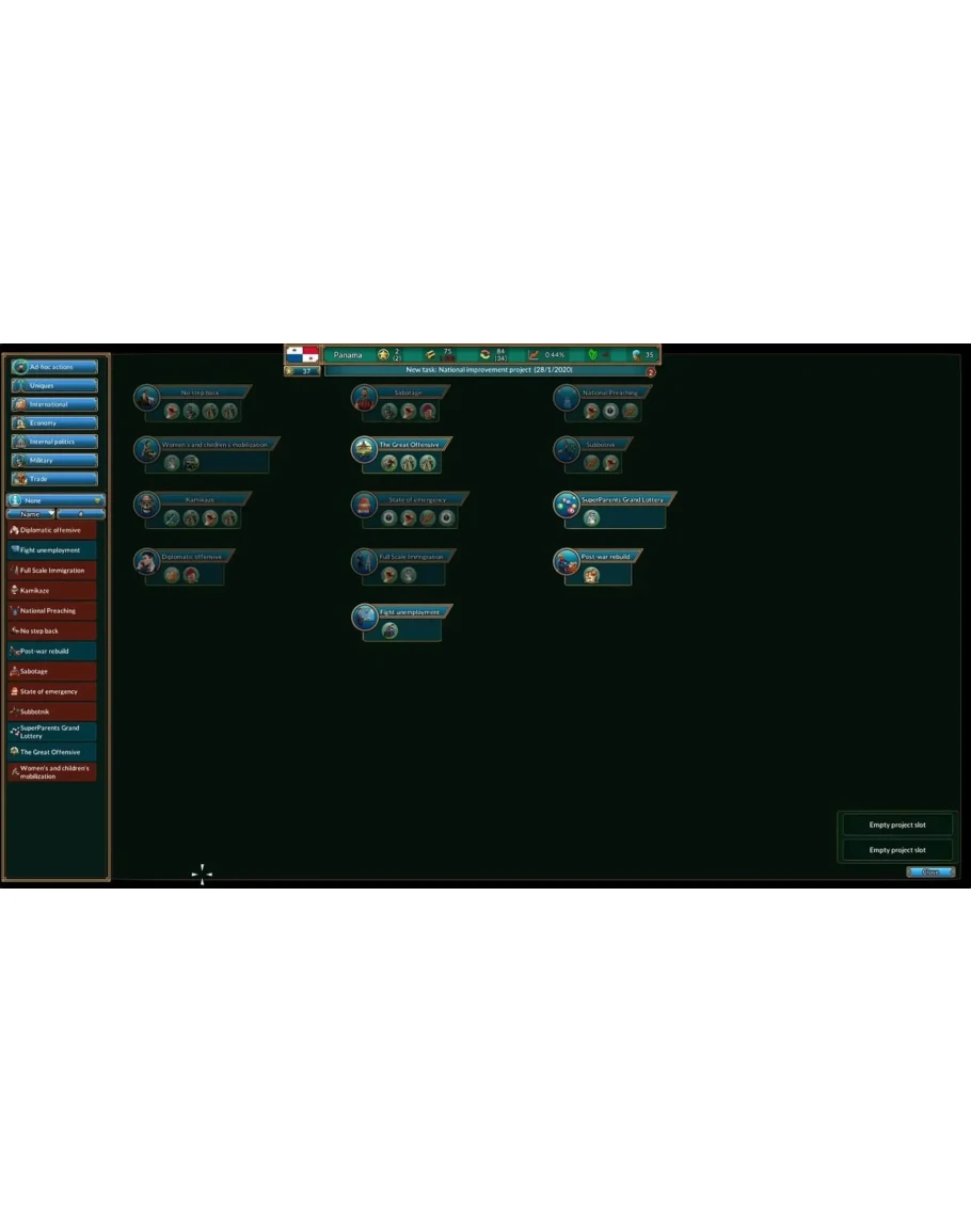 🔥Расширьте и развейте свое государство до пика экономической мощи, технологической конкурентоспособности и военного превосходства, опередив игроков со всего мира. Выбор за вами: станьте ценным членом ООН или диктатором с ядерным вооружением, держащим в страхе весь мир.🔥