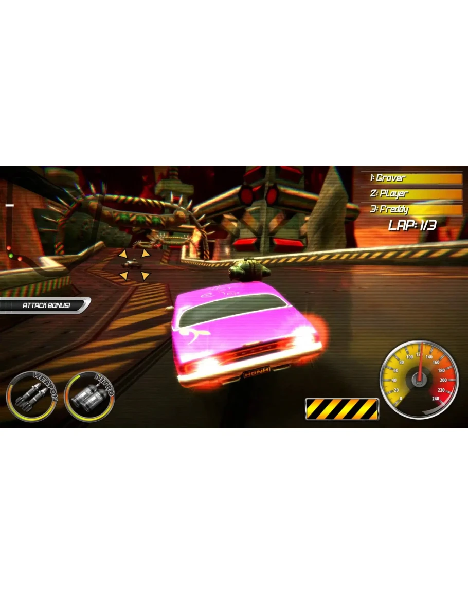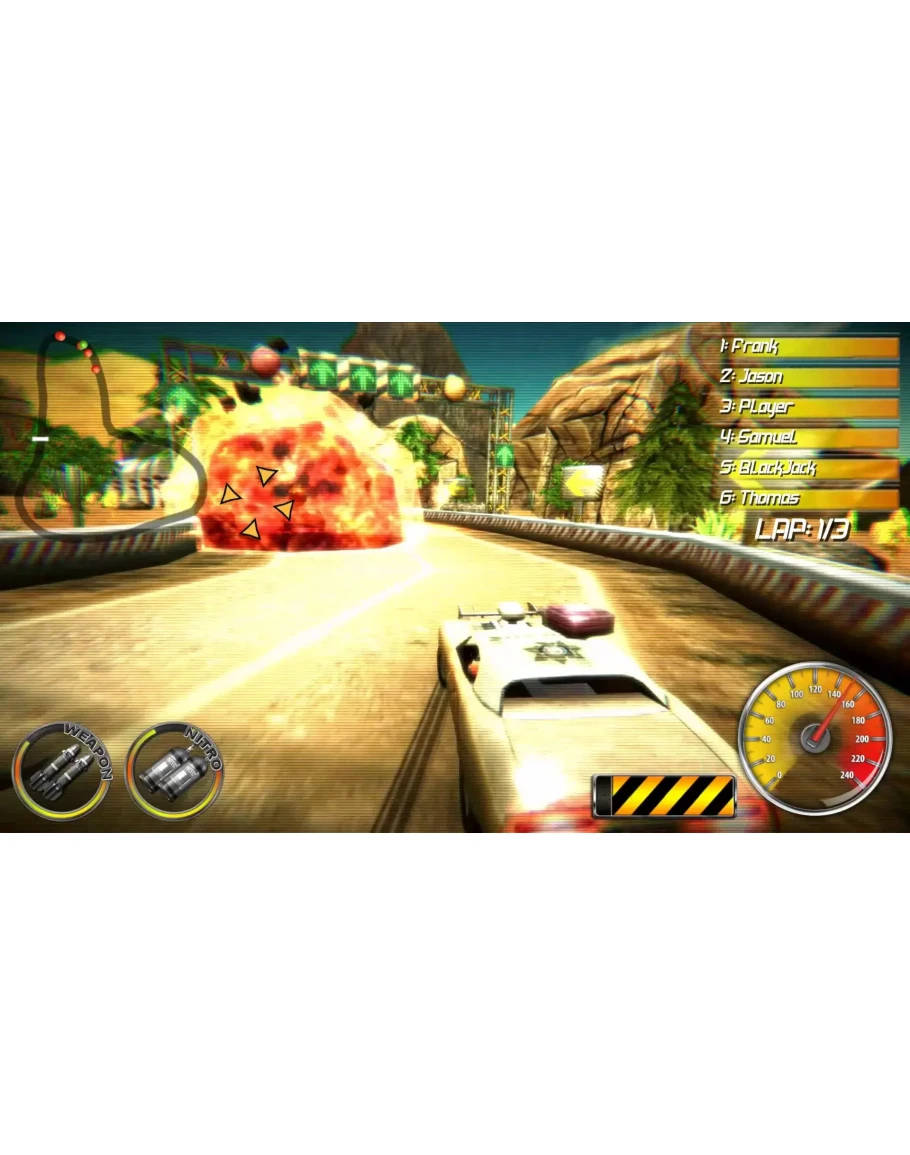 А все потому что сюда завезли саундтрек в жанре тяжелого металла машины с прикрученными к ним ракетными установками и нитроускорители И с этим комплектом вы сможете крушить ломать и расщеплять на атомы машины своих врагов по пути к финишу Ретрографика доступный ценник и восхитительные взрывы на опасных для жизни треках ну и как тут удержаться