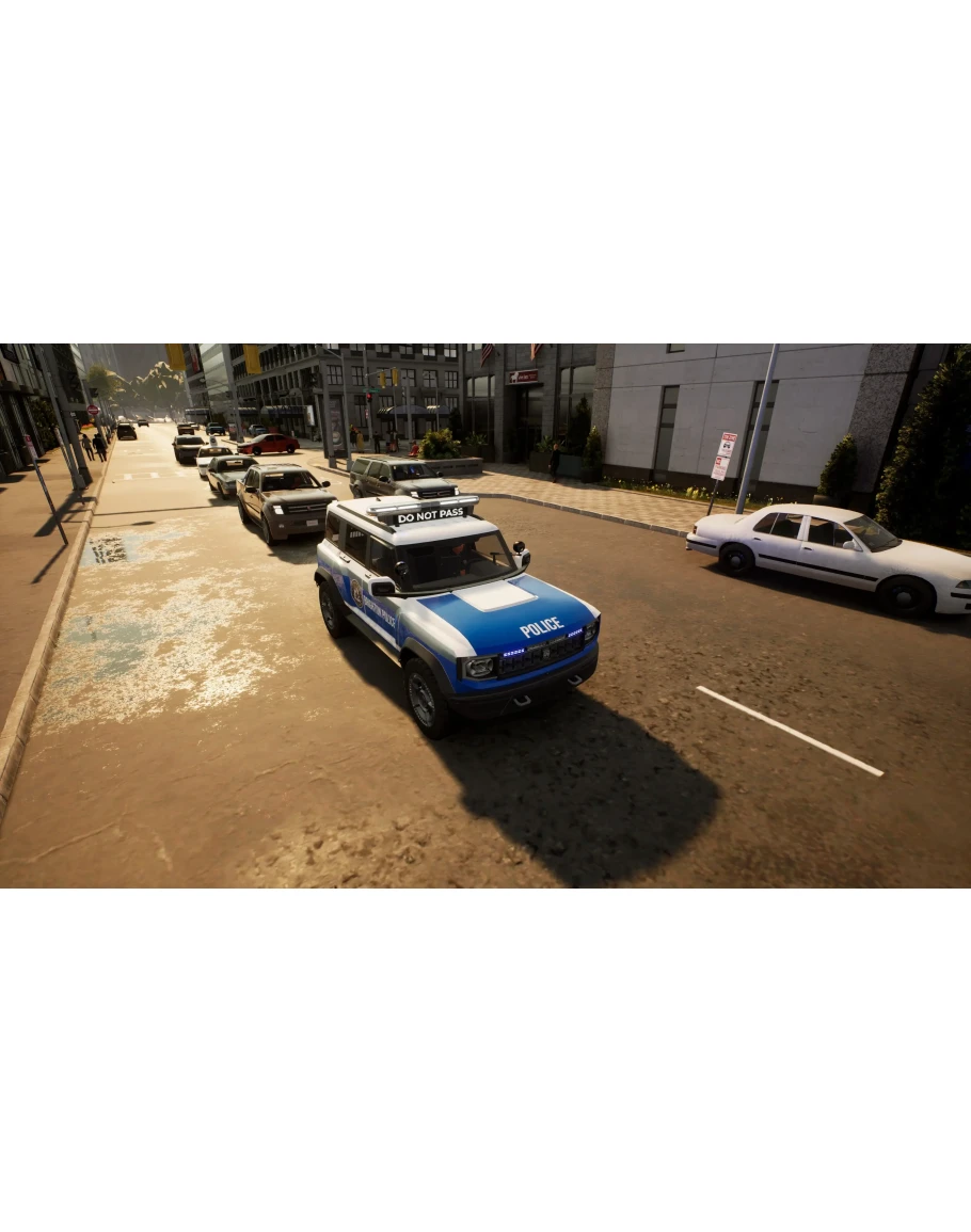В полицейском автомобиле Warden Police Vehicle сверху установлена световая панель которая может отображать сообщения для обеспечения безопасности мест дорожнотранспортных происшествий в ночное время а также для установки дорожных заграждений или подачи сигнала остановиться нарушителям правил дорожного движения