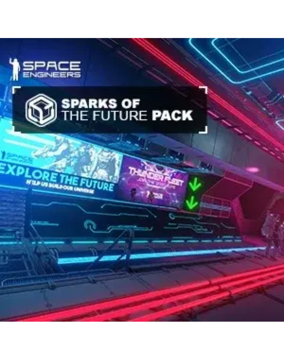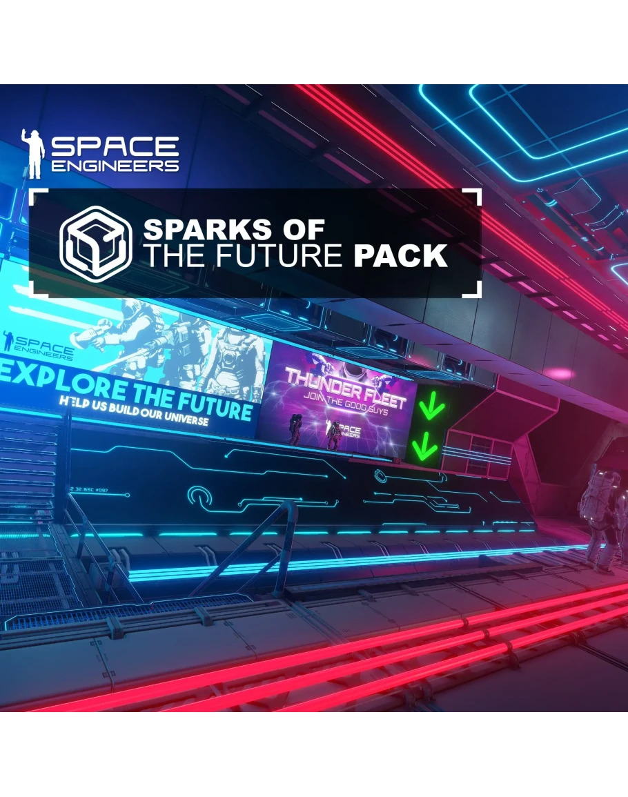Набор Space Engineers Sparks of the Future включает такие элементы в научнофантастическом стиле как ЖКэкраны неоновые трубки ионные ускорители ускорители для маневрирования в атмосфере внутренние стены барная стойка панель управления раздвижная дверь однокнопочная и четырёхкнопочная панель а также научнофантастический скин брони 2 неоновых скина брони и 8 новых эмоций персонажа