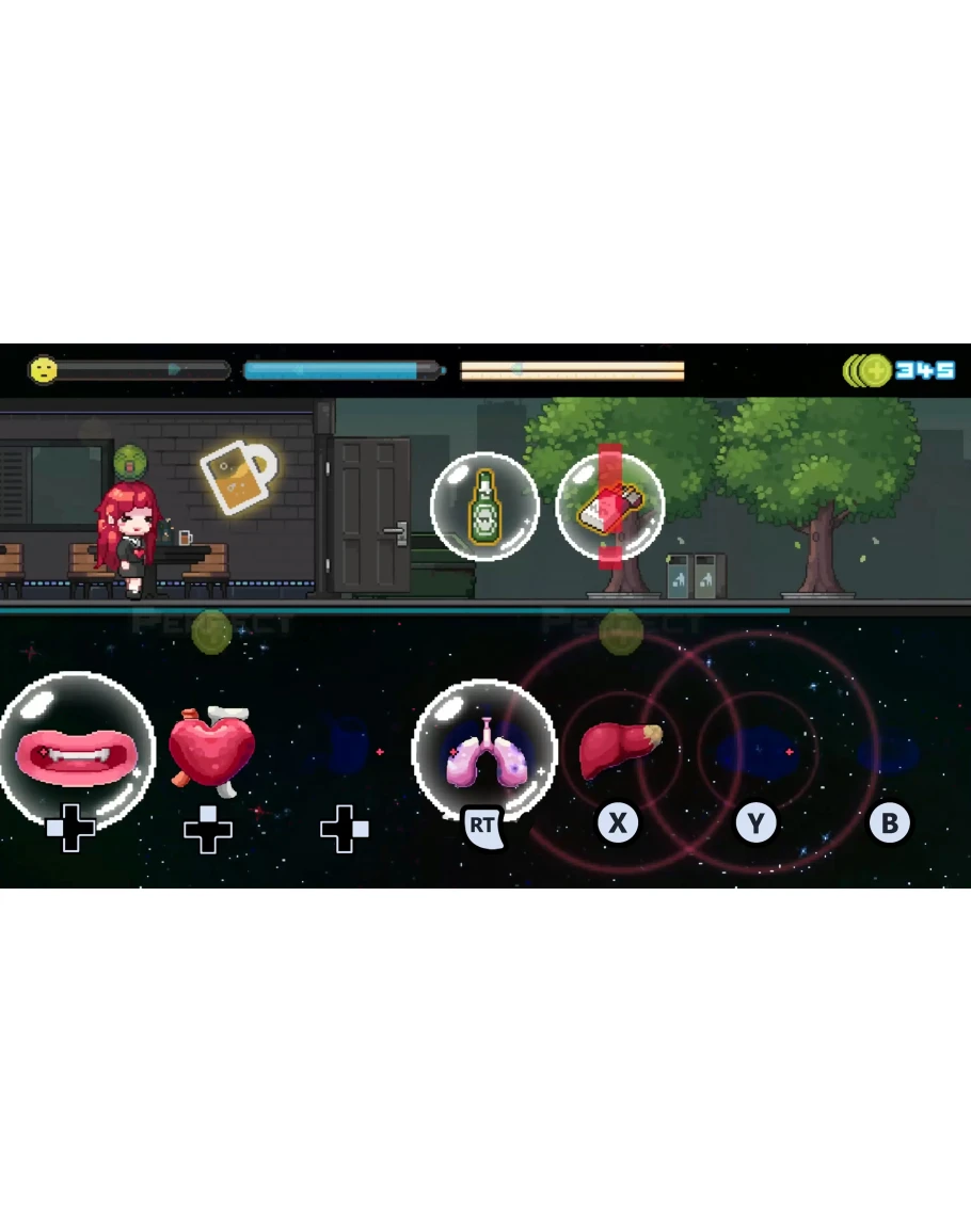 Life isn’t easy and you’ll feel it in every beat. Stay focused and follow the rhythm to keep each of her organs working properly.