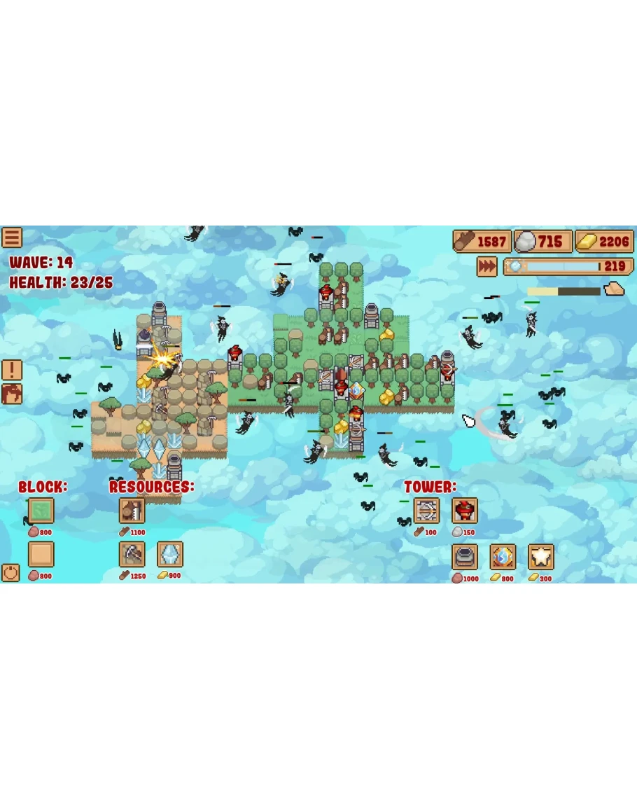 Порядок выбора улучшений в каждой игре очень важен. Вы можете выбрать улучшения, основанные на ресурсах, улучшения волшебной башни или улучшения для сильной ранней защиты, которые позволят вам безопасно перейти к поздней игре. В сочетании со случайно генерируемыми блоками это дает бесконечную ценность воспроизведения.
