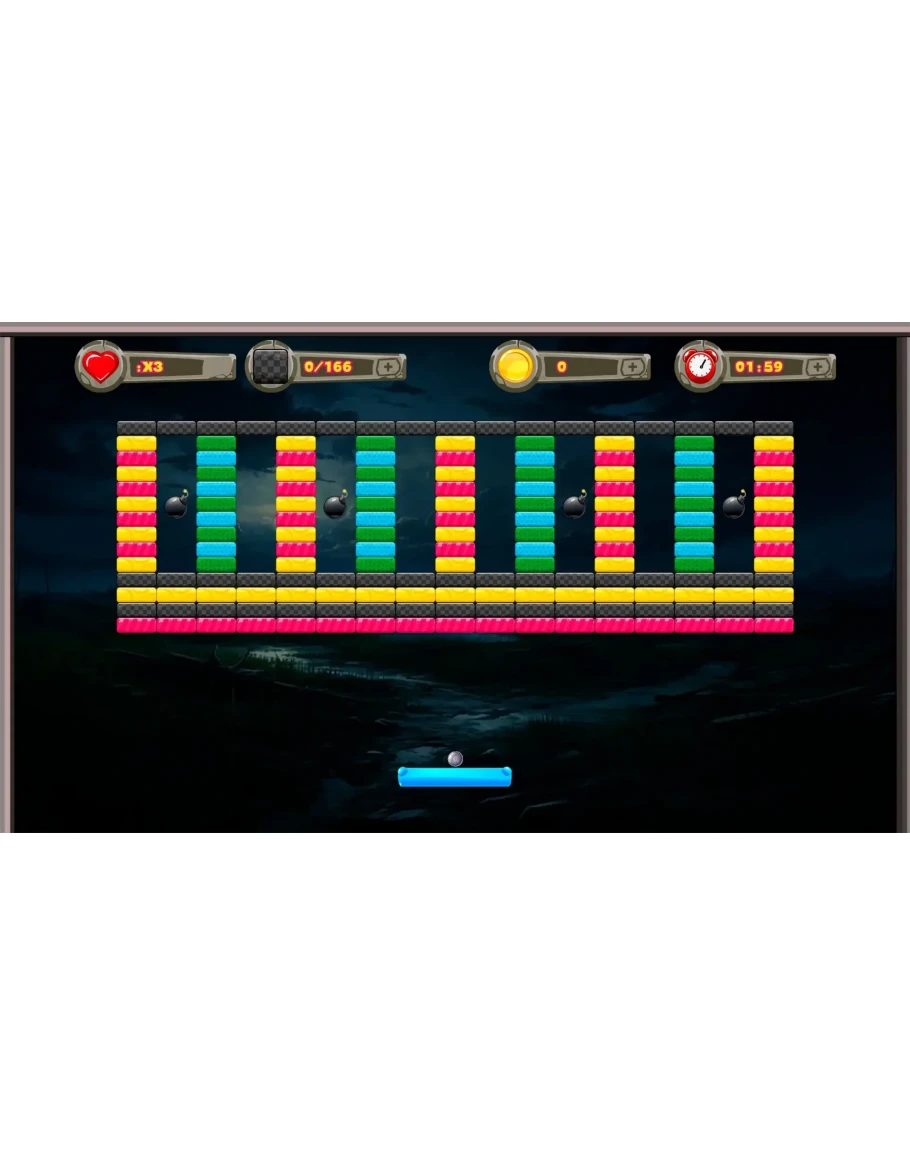 Get ready to experience the thrill of BREAKING BRICKS, an addictive arcade game that will captivate players of all ages. With 40 challenging levels, you’ll have a blast breaking bricks and progressing to new stages. The goal of BREAKING BRICKS is simple: use your skill and quick reflexes to destroy all the blocks on the screen. But it won’t be as easy as it sounds! As you advance through the levels, the blocks become tougher, requiring smart strategies to overcome each challenge. What truly sets BREAKING BRICKS apart are the exciting power-ups you’ll discover throughout the game. These power-ups range from extra balls to multiply your score, to powerful weapons that destroy multiple blocks at once. Each power-up adds an extra layer of excitement and strategy, keeping you on your toes and eager for more. With its fast-paced action and intuitive controls, BREAKING BRICKS delivers an engaging experience from start to finish. Every level provides a sense of achievement as you progress.