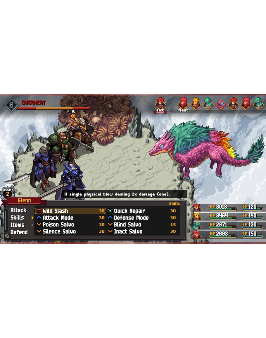 Chained Echoes is a story-driven JRPG where a group of heroes travel around the vast continent of Valandis to bring an end to the war between its three kingdoms. In the course of their journey, they will travel through a wide array of diverse landscapes spanning from wind-tanned plateaus and exotic archipelagos to sunken cities and forgotten dungeons.
