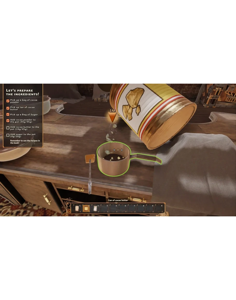 Добро пожаловать в симулятор шоколадной фабрики, где шестеренки и пар работают сверхурочно, чтобы создать самый вкусный шоколад! Используйте свою часовую мастерскую, полную изысканных механизмов, чтобы создать все виды шоколада, о которых только могут мечтать ваши клиенты! Все стимпанковские технологии мира идеально подходят для изготовления сладостей, и все они доступны вам на вашем производстве.