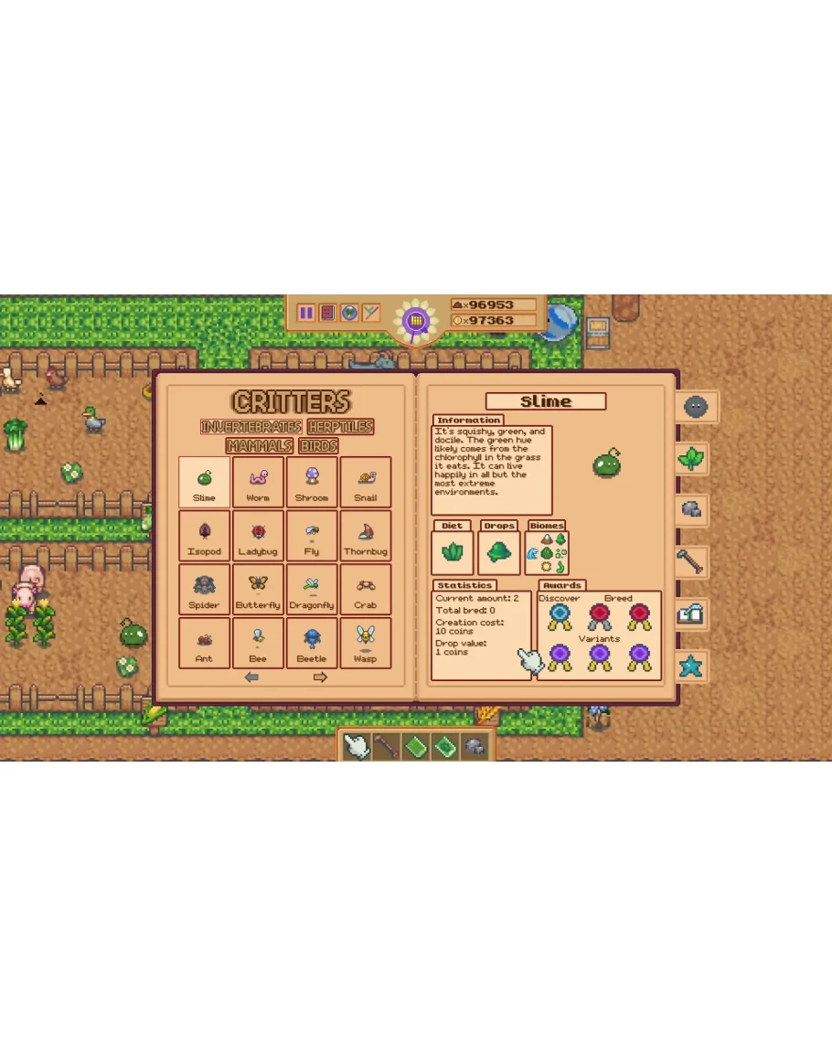 You are an astrobiologist stranded on a lifeless planet. Breathe new life into this mysterious world by gathering plants, animals, and research upgrades to help it grow back to its full potential. Collect, breed, and evolve over 90 cute and quirky Critters to help you on your journey back home!