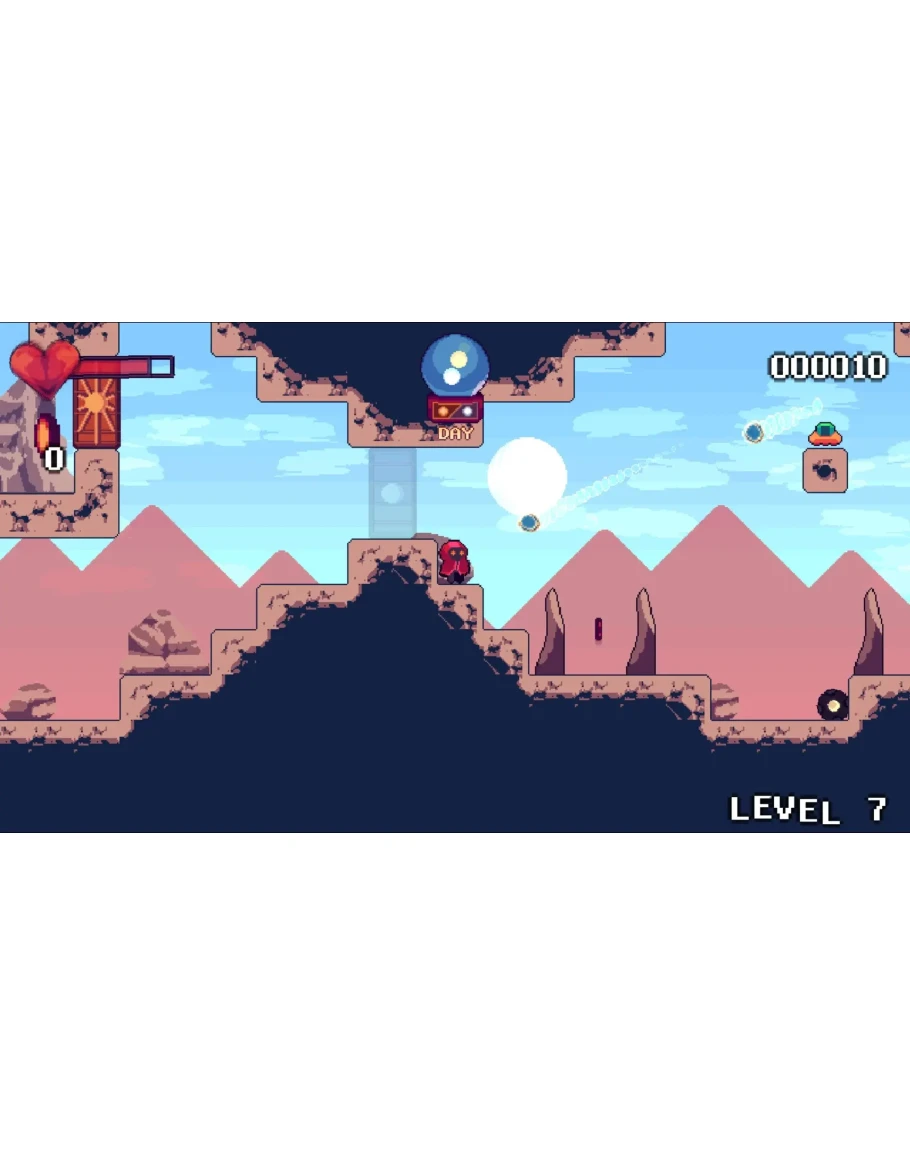 The spell book is missing! Help the magician to find it in this action platformer adventure. Use the crystal ball to change between the day and night to make your path, collect tokens and buy useful upgrades. Venture out 4 different biomes (mountain, woods, winter forest and city) with a total of 32 levels. Warping the day / night cycle changes ambiental obstacles and enemies behavior.