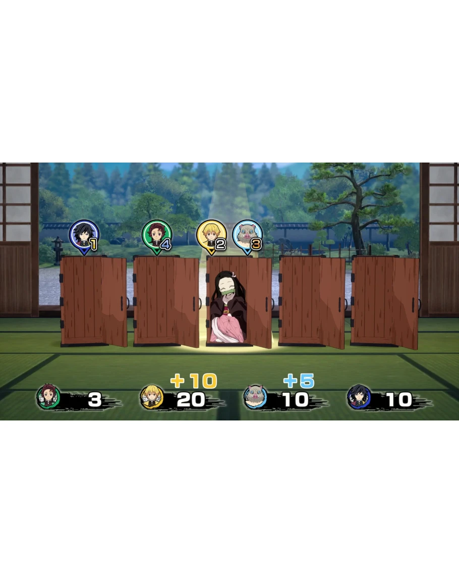Choose your favorite characters from the Demon Slayer Corps., including Tanjiro, Zenitsu, Inosuke, and the Hashira! Nezuko appears on the game board to aid players as a support character!