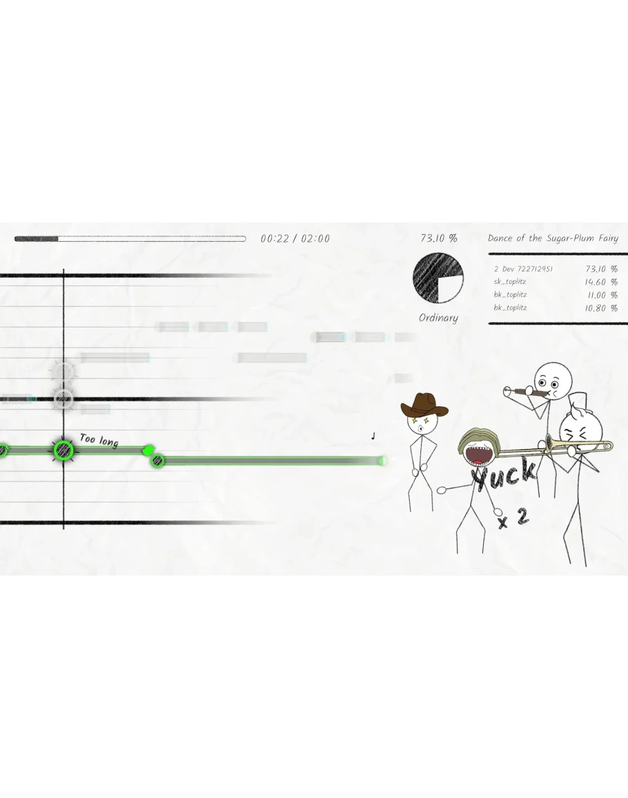 Начинаем отжигать! Играйте в одиночку или позовите друзей. Выберите трек, возьмите в руки инструмент и отправляйтесь покорять сцену. Пора в отрыв: импортируйте в игру собственные треки и исполните их вместе с друзьями. Докажите, что вы не самая худшая группа в истории.