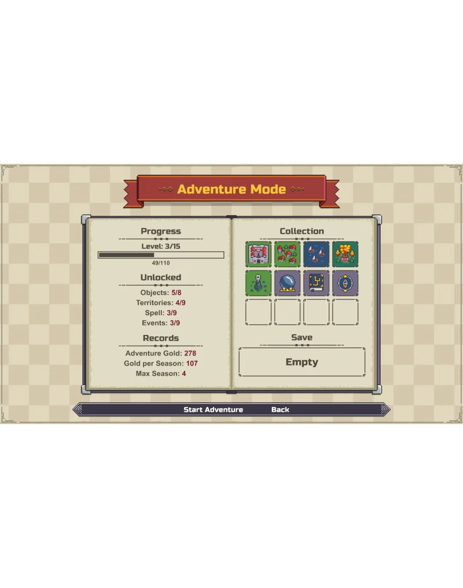 В режиме приключения вы начинаете игру на случайной карте и получаете бесконечный набор кусочков территории.