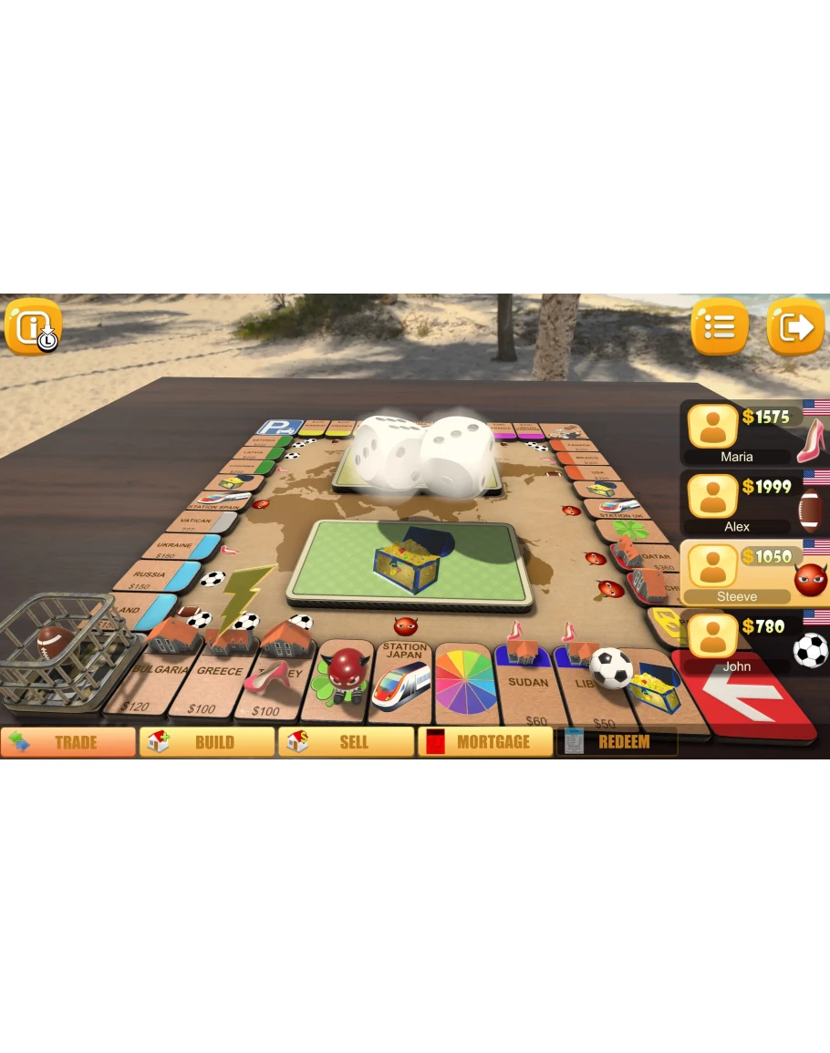 Получите монополию на игровое поле и обанкротите других игроков, чтобы победить.