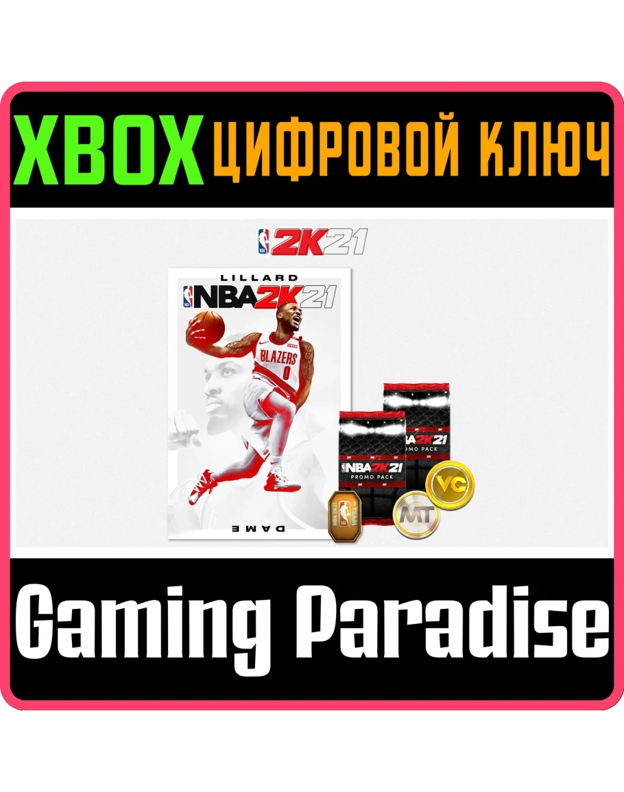 Предложение включает NBA 2K21 Standard Edition для Xbox One, 15 000 ед. виртуальной валюты, 5000 очков MyTEAM, 30 жетонов MT и два промокомплекта MT.
