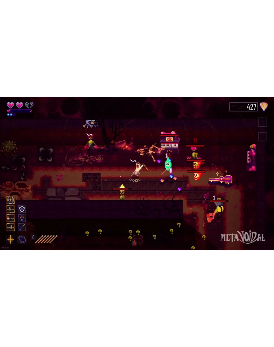 Metavoidal is a 2D pixel art, action rogue-lite game where music determines your abilities, and your abilities shape the dynamic metal soundtrack.