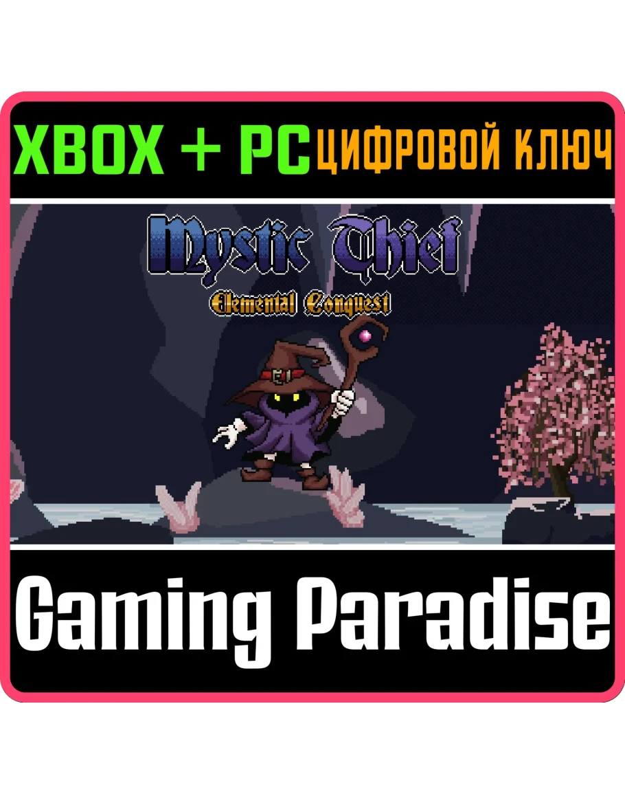 Войдите в мир, где магия — это сила, а воровство — ваше главное оружие. Играй за Зеви — загадочного мага в капюшоне, обладающего редкой способностью красть волшебные посохи и использовать заклинания других магов. Погрузитесь в глубины постоянно меняющегося Элементального Подземелья — опасного лабиринта, известного только волшебникам, наполненного древними сокровищами, элементальными врагами и запретной магией. Овладейте каждым элементом. Завоюйте каждую комнату. Станьте величайшим магистром арканной магии. Mystic Thief - Elemental Conquest — это 2D платформер с графикой в стиле пиксель-арт, где вы играете за мага, исследующего подземелье, куда могут войти только маги, чтобы завладеть всеми сокровищами и золотом. В игре есть простая таблица стихий, где атака определённых врагов или объектов определённым элементом может вызвать особые эффекты или нанести дополнительный урон. Используйте стихии себе на пользу и крадите волшебные посохи, чтобы менять свои заклинания. Применяйте свои знания и наблюдательность, чтобы победить всех врагов, открыть все сундуки и завоевать это магическое подземелье!
