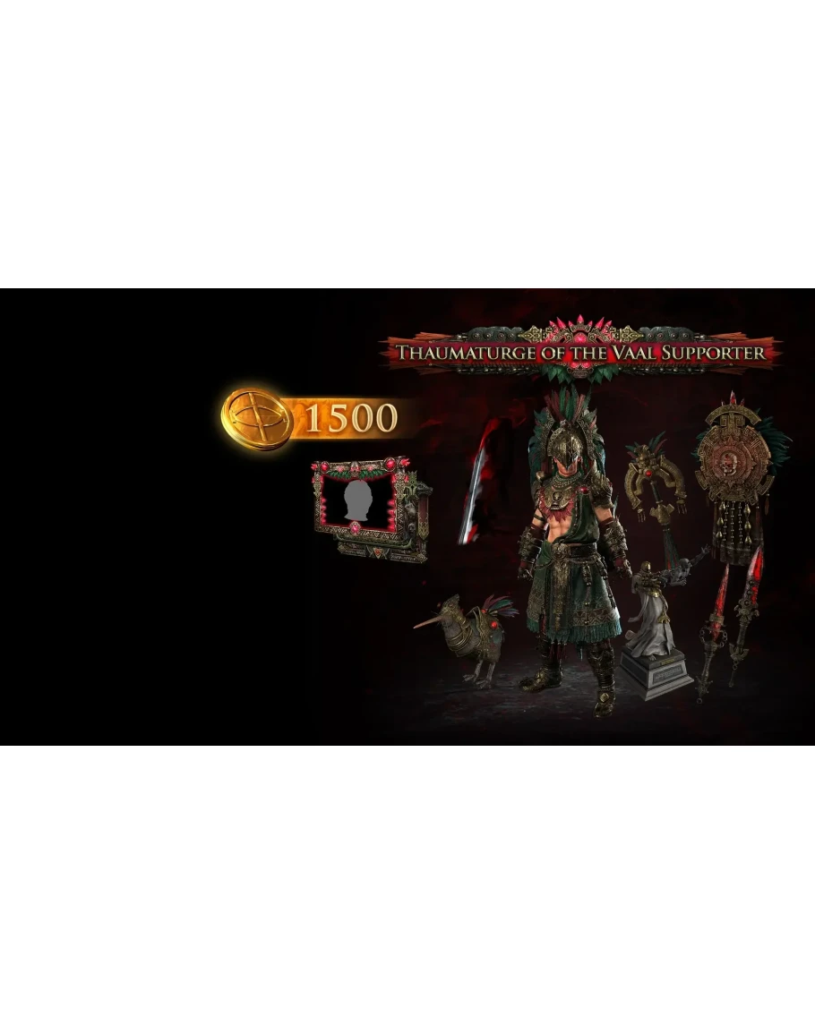 В набор поддержки Волшебника ваал входят ранний доступ к Path of Exile 2, три набора доспехов, три заплечных украшения, эффект оружия, шесть внешних видов оружия, четыре питомца, три украшения для убежища, эффект повышения уровня, убежище, портал, три портретные рамки, три форумных титула, три значка и 1500 монет.