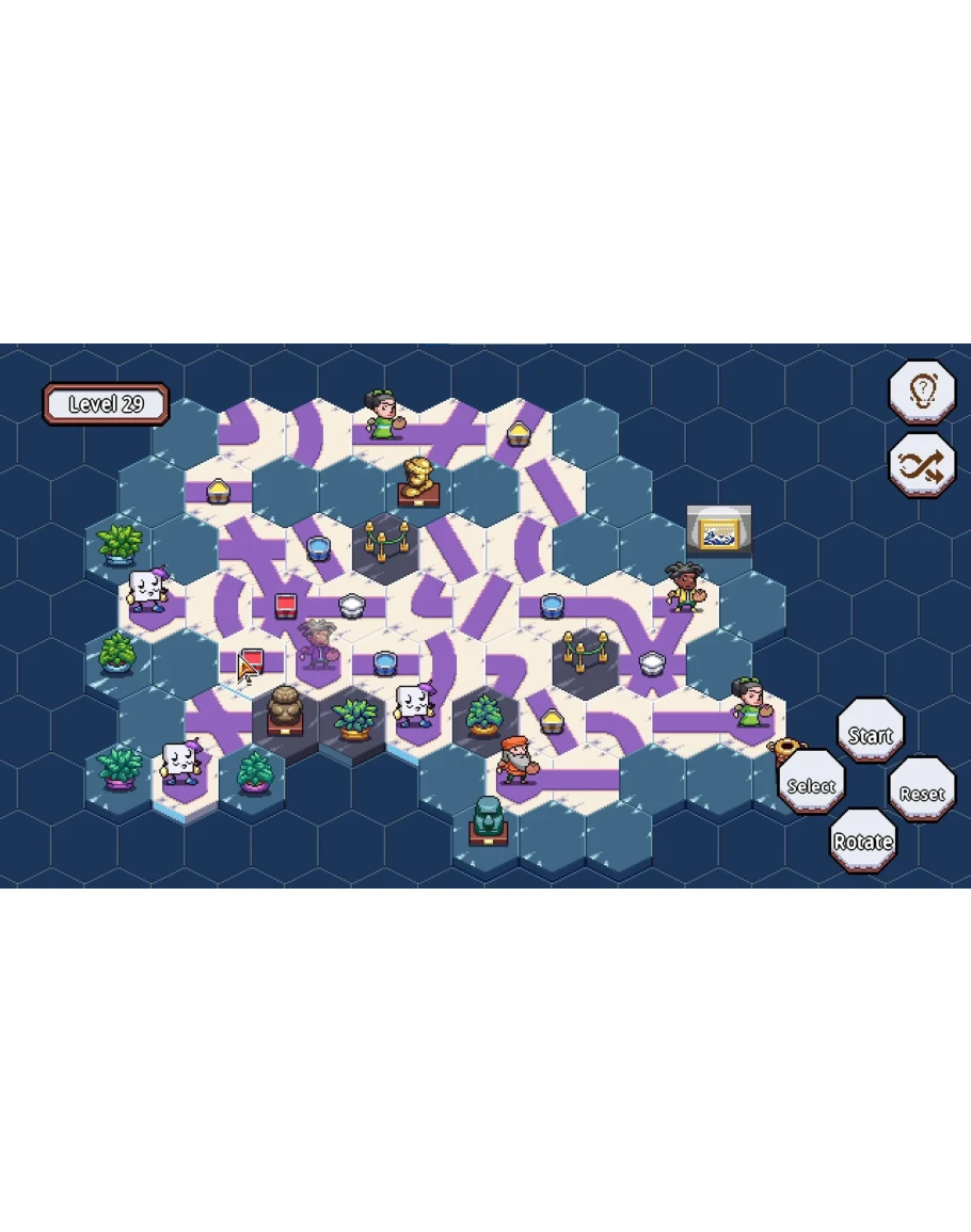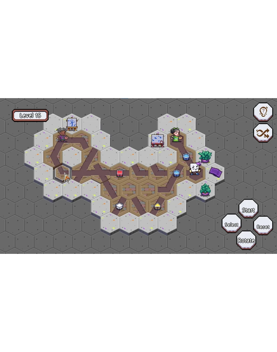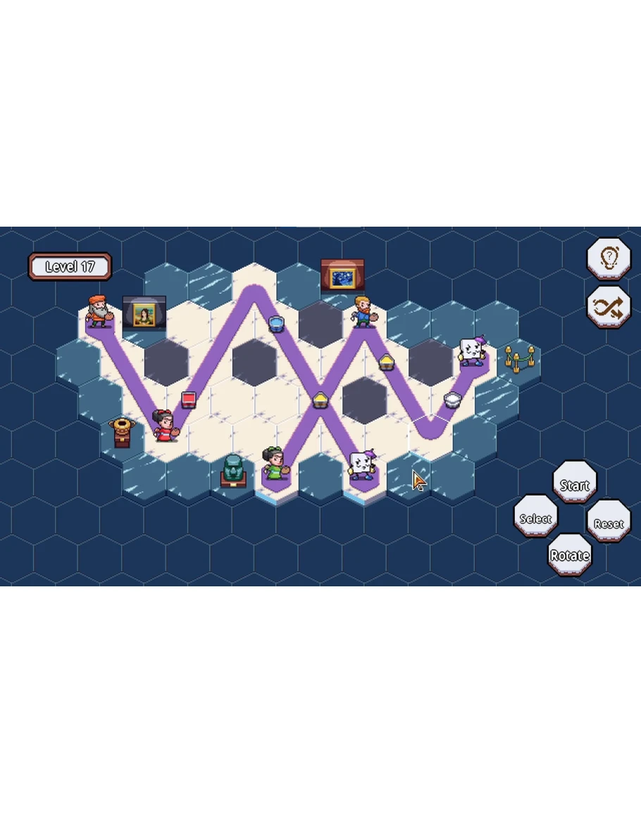 Механика проста для изучения, но полна возможностей: вращайте и меняйте плитки, чтобы построить путь, организуйте ведра с краской и убедитесь, что холст проходит мимо художников с правильным цветом. Ошибка в последовательности приведет к проигрышу уровня.