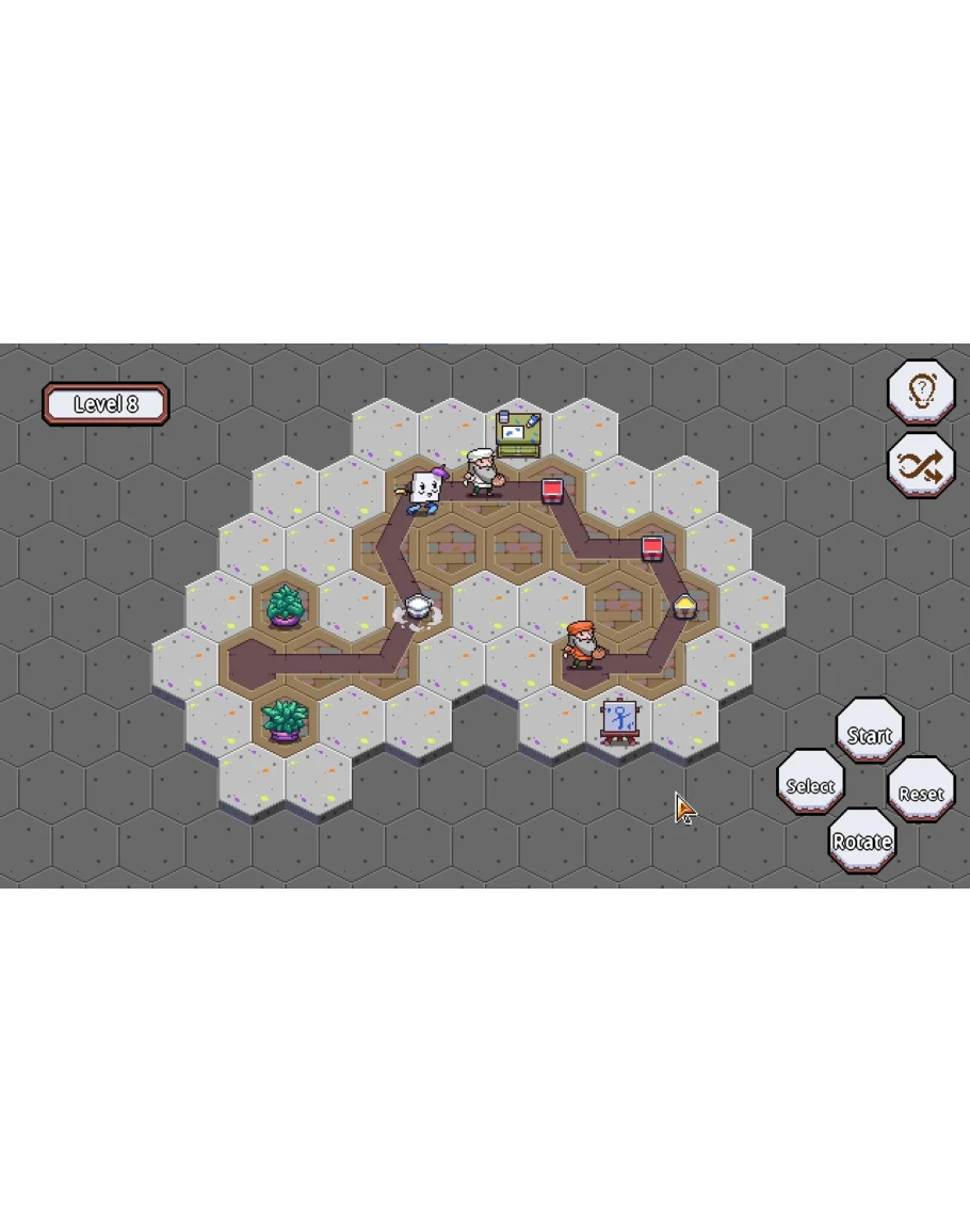 В Paint Path каждый шаг — это мазок кисти. Эта головоломка в пиксель-арте позволяет управлять движущимся холстом, который должен пройти через шестиугольные карты, чтобы достичь нужных художников. Атмосфера очаровательная и расслабляющая, звуки сопровождают каждое действие рисования, создавая уютное и художественное впечатление.