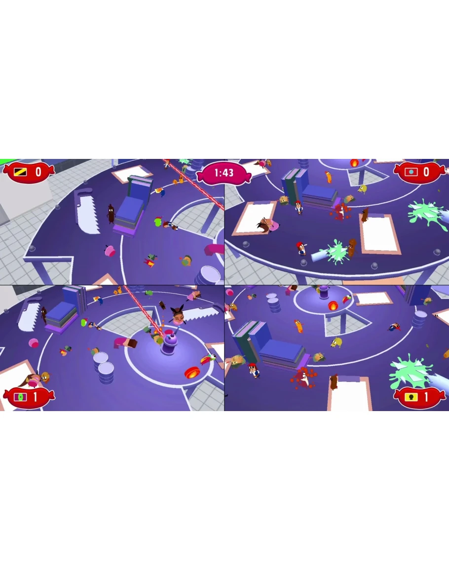 Бей и толкай сосисочных врагов на осколки стекла, раскалённые конфорки или в раковинную пропасть!
