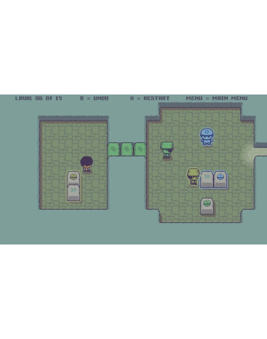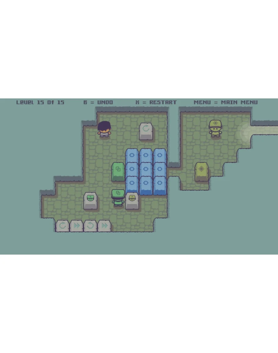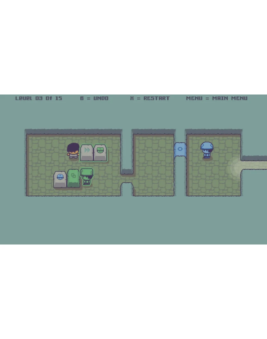 Use your puzzle skills to help the player escape the dungeon. Arrange the blocks in sokoban manner to move the pawns, and they will move blocks that aren't directly available to you. Plan their movements well, know when to start and stop, let them make new movement sequences for you, smart out your way to freedom.