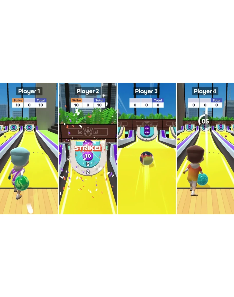 Приготовься к насыщенному вызову – каждый strike приближает тебя к победе! Играй с друзьями или семьёй в локальных матчах до четырёх игроков, участвуй в захватывающих турнирах против лучших игроков и соревнуйся на удивительных дорожках с классными видами. Только лучшие проходят в финал – поднимешь ли ты кубок?