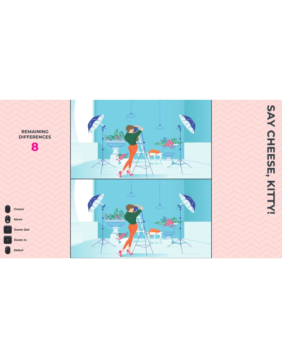 Spot Challenge Vol. 1 is a game series inspired by the classic "Spot the Differences", where you need to compare two images and identify the differences between them. With over 360 differences spread across 35 levels, will you be able to find them all? Perfect for playing solo or with friends and family, Spot Challenge is the ultimate challenge to test your attention to details!