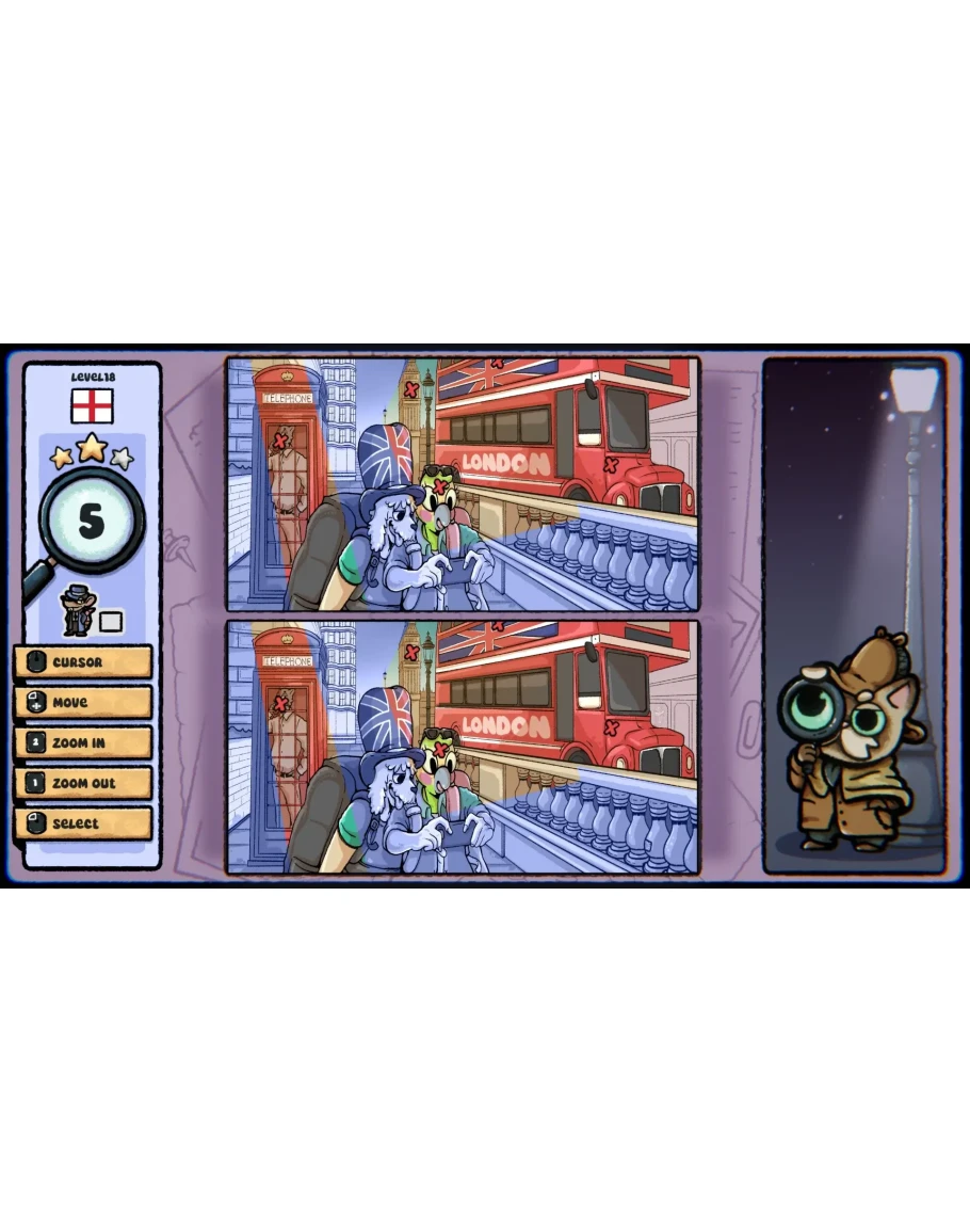 The notorious Cheddar Mafia is spreading chaos across Europe, and only SpotCat can stop them. Explore vibrant, hand-drawn scenes from different countries, spot the subtle differences, and stay sharp—mafia rats can appear when you least expect it.