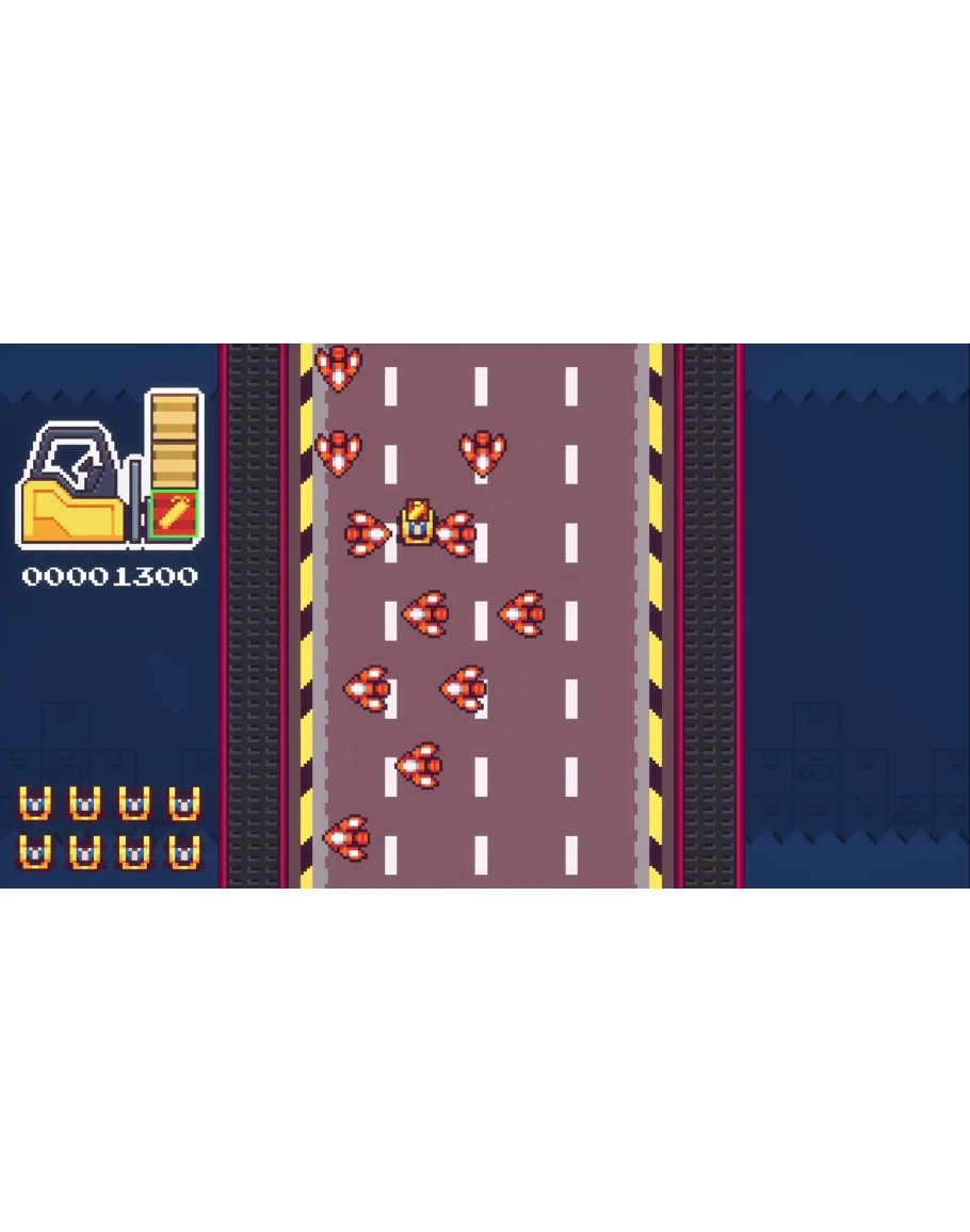 Super Forklift 3000 is an arcade space shooter with a twist: you drive a forklift that carries and shoots up to three boxes, each with unique effects. Defeat enemies and bosses while managing your different box types. Be careful not to run out of ammo!