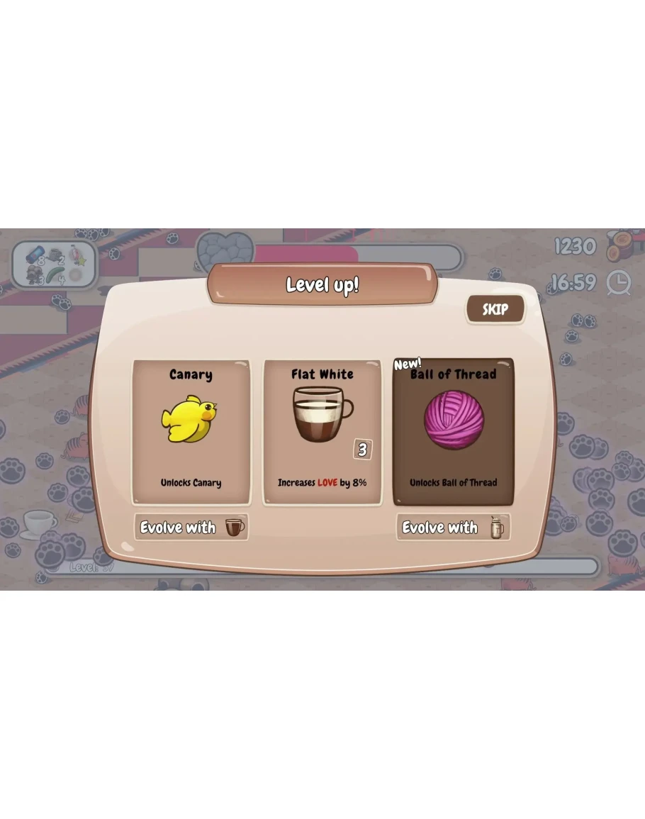 - Улучшай официантов и игрушки, чтобы стать сильнейшим укротителем котов