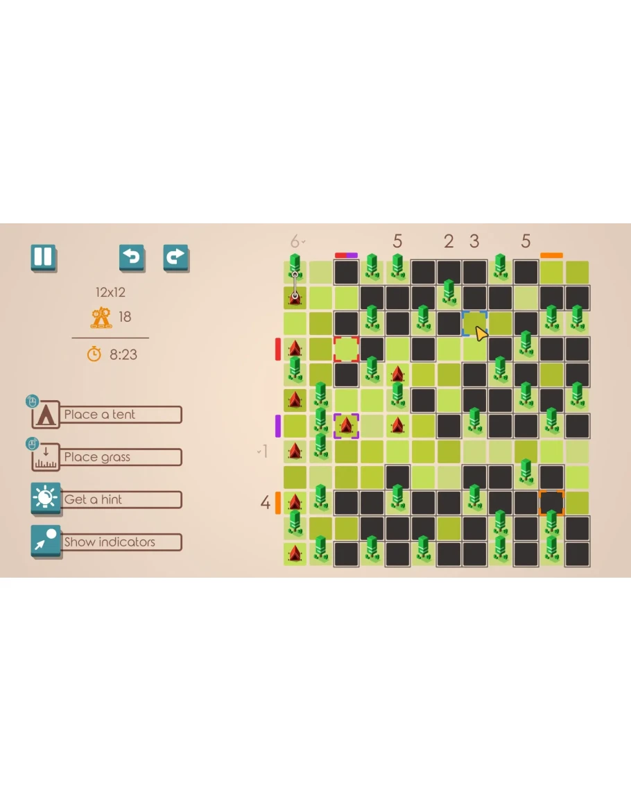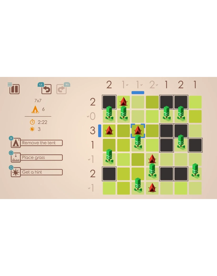 Ваша миссия проста: ставьте палатки возле деревьев на сетке-лужайке. Цифры вокруг нее указывают на то, сколько палаток нужно разместить в каждом ряду и столбике, но будьте осторожны: палатки не могут стоять рядом друг с другом. Для каждого уровня есть только одно уникальное решение, так что не торопитесь и тщательно планируйте каждый ход.