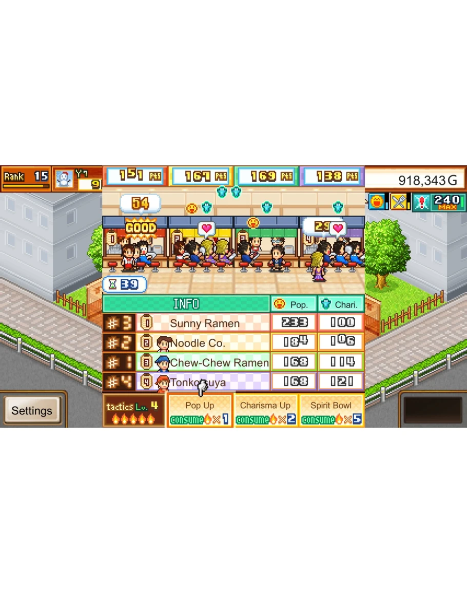 Enter contests and see how you size up against rivals, thus cementing your standing as superlative sensei of the savory! Succeed--and one day you might even have your own ramen theme park!