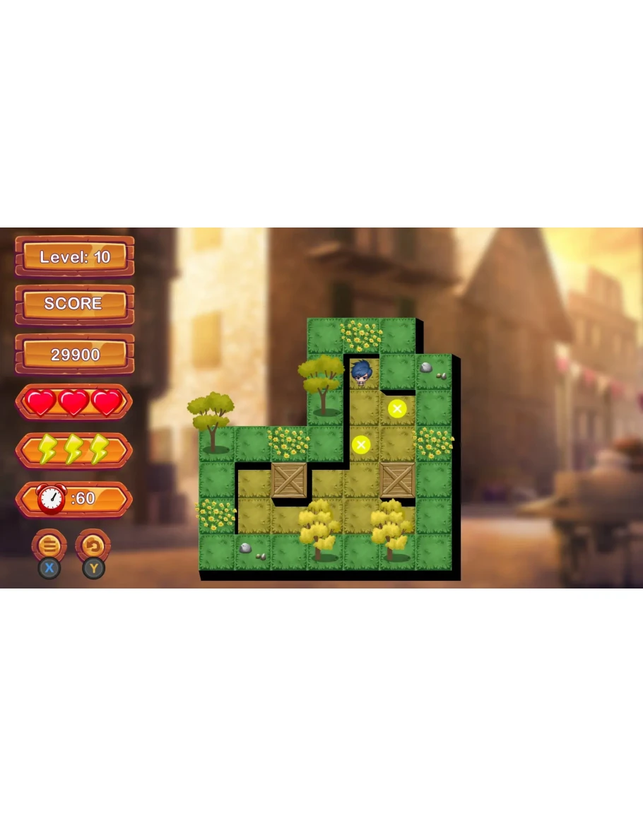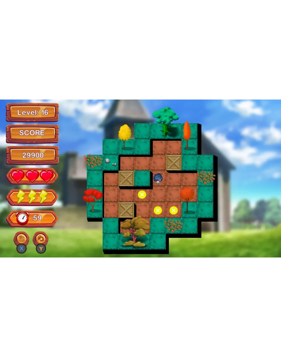 SENSHI SOKOBAN QUEST: Introducing an exciting traditional Sokoban game! Your mission is to correctly position the boxes on the markers before time runs out. But be careful, if time runs out, you'll lose a heart. If you lose all your hearts, the game is over. But don't worry, you can go back to the level where you left off. Plus, we have a surprise! You can use lightning to reset a level. The faster you complete a level, the more points you'll earn. Get ready to have fun and challenge your mind!