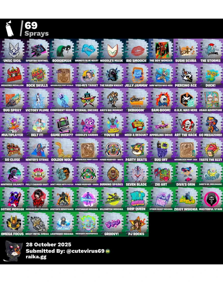 Редкие кроссоверные скины (например, UNSC Spartan, Finn the Human, Sabrina Carpenter, Green Ranger, скины в стиле Dino Megazord)