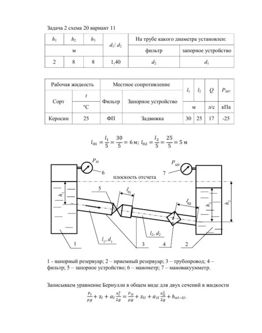 Задание по гидравлике (задача 2 схема 20 вариант 11)