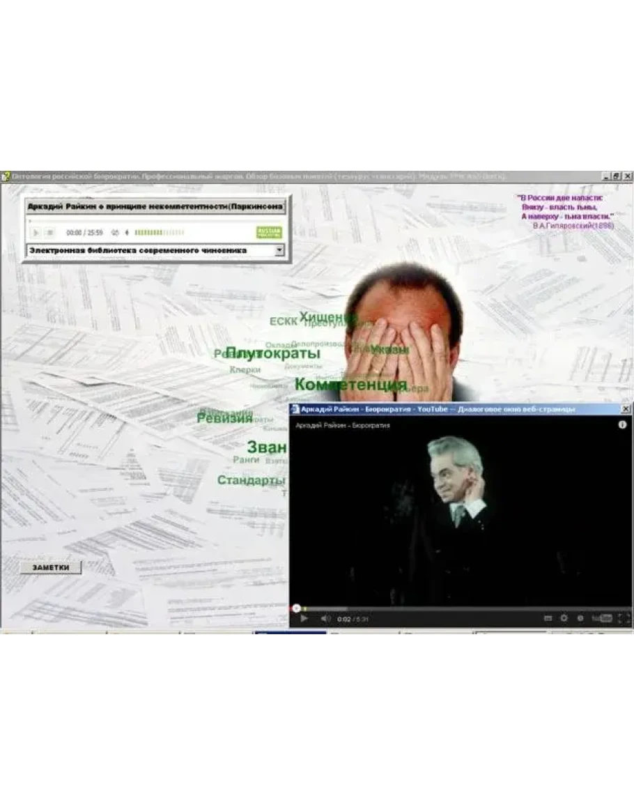 Гипертекстовый глоссарий базовых понятий бюрократии с дополнительными видеороликами по теме.