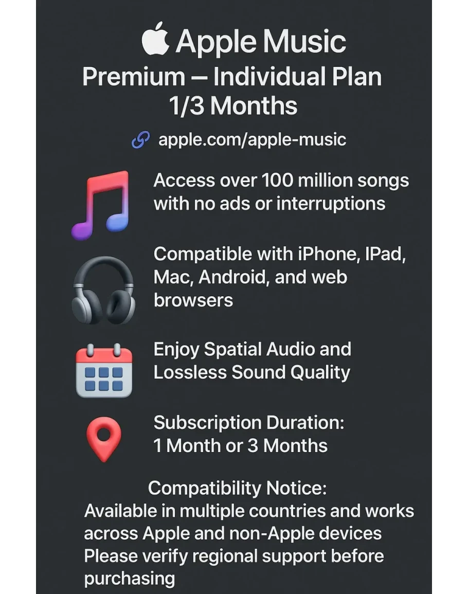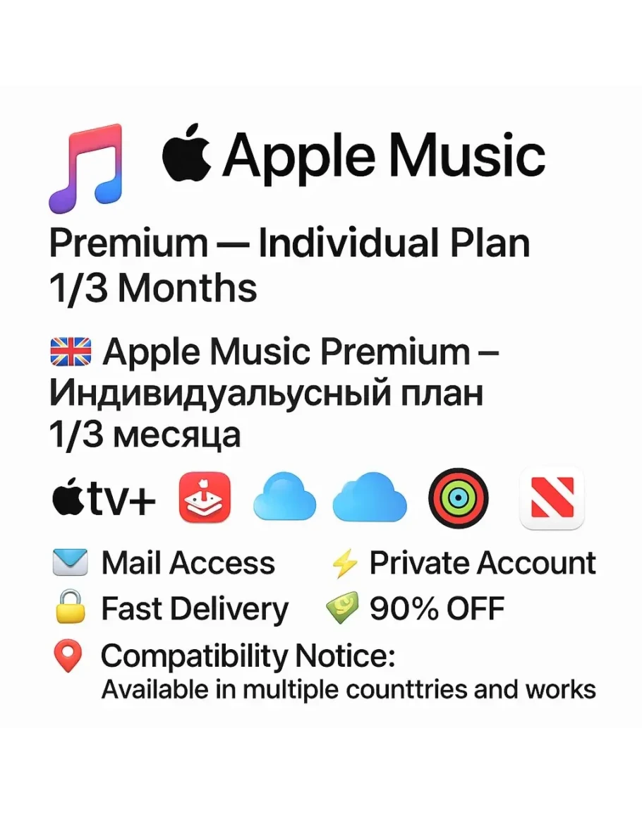 Apple Music Premium - Индивидуальный 1/3М Быстрая