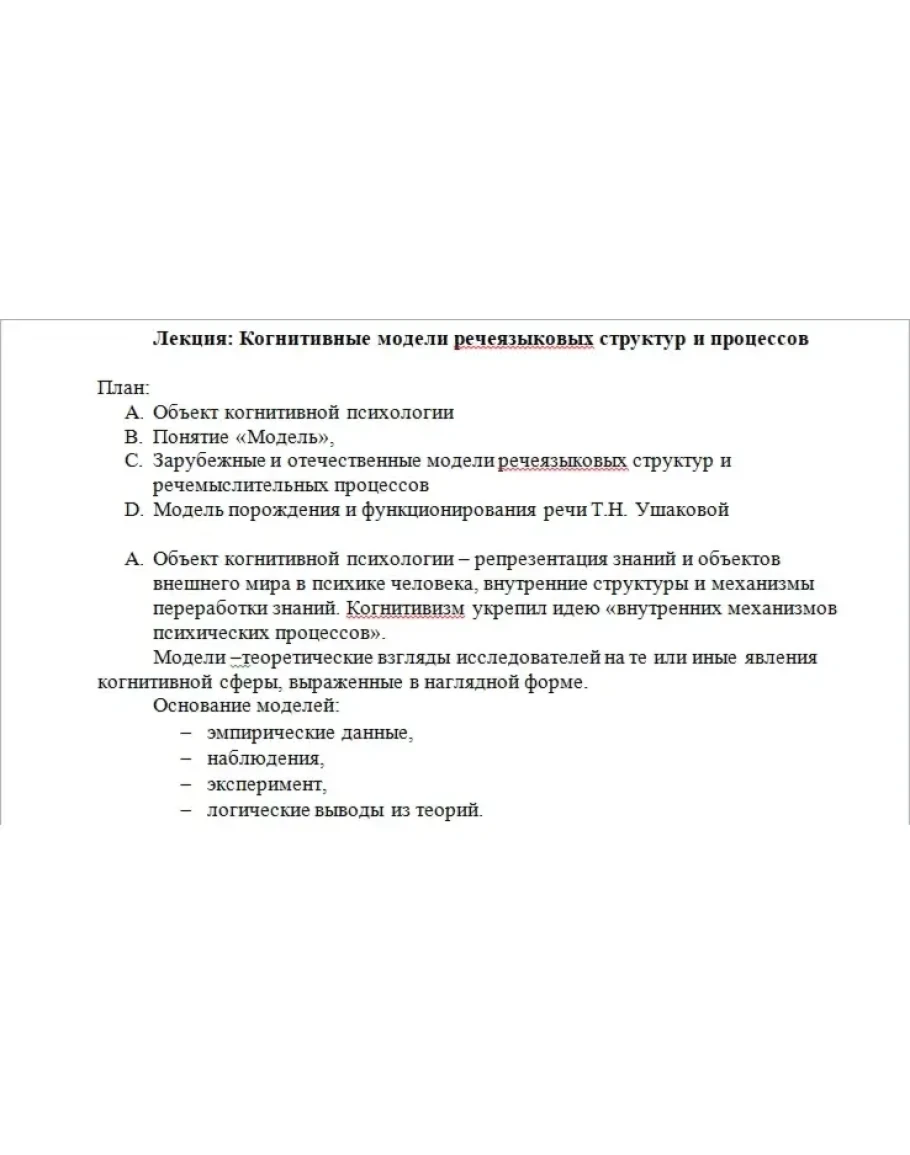 Лекция по теме: "Когнитивные модели речеязыковых структур и процессов" (1 курс, магистратура).